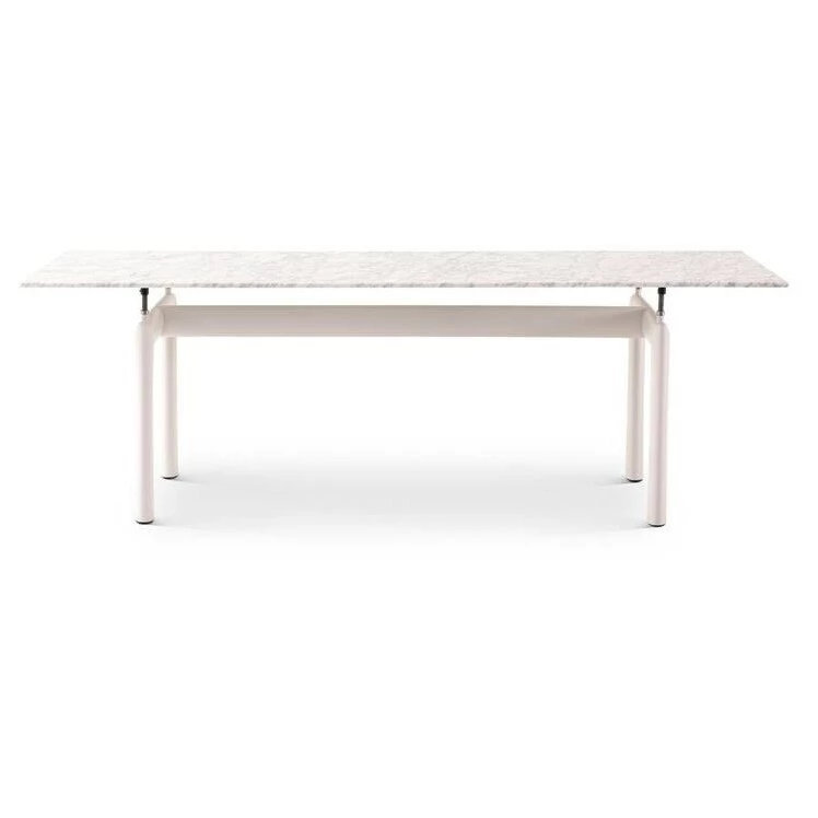 Le concept de base de la table Table tube d'avion, introduite en 1929 au Salon d'Automne, réside dans la distinction entre la pièce de support et la pièce supportée ; en d'autres termes, entre la base et le dessus. La séparation des deux parties est mise en valeur par les quatre supports intermédiaires qui servent à la fois d'ajusteurs de niveau et d'espaces entre la masse du support et les lignes élancées du dessus. Plus précisément, la base a été conçue en 1928, prenant pour modèle les profils ovales utilisés dans le secteur aéronautique pour séparer les ailes des biplans. Le modèle actuel est également disponible en version extérieure avec une structure en acier inoxydable et une finition en poudre texturée spécifiquement pour une utilisation en extérieur, disponible en cinq couleurs.