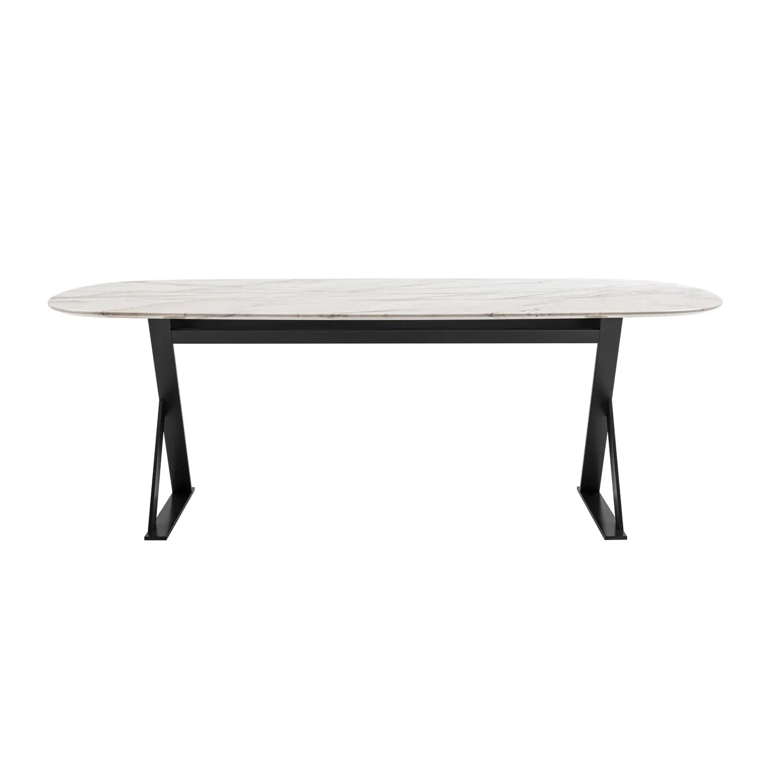 La table Pathos est disponible avec un plateau rond, rectangulaire ou carré, avec des coins arrondis et des détails raffinés sur les bords courbés et peut être en marbre ou en fibre de bois MDF peinte dans des couleurs brillantes. Le cadre de support avec des pieds en forme de X est en acier disponible dans diverses finitions.