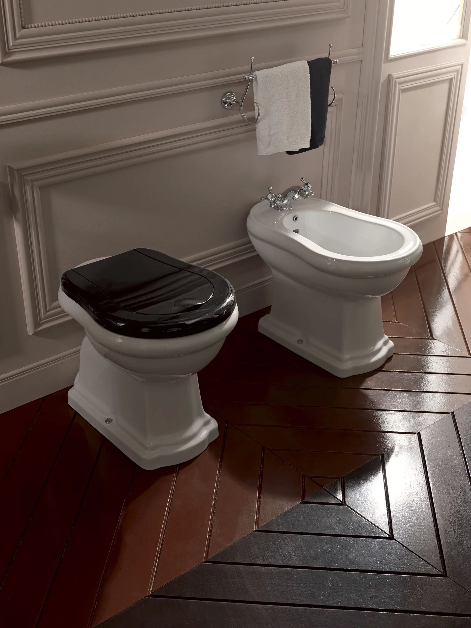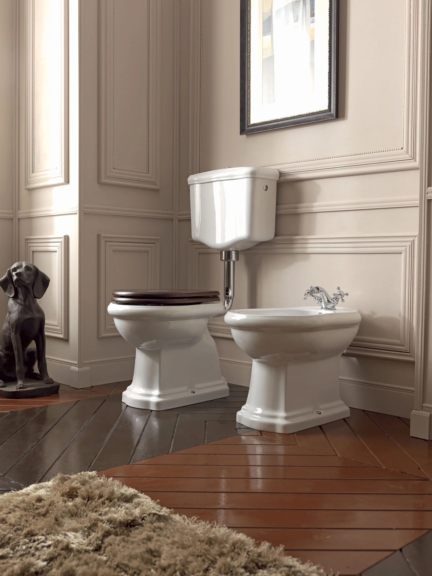 Sortie de sol pour cuvette WC. Le design classique des toilettes Retro convient parfaitement aux salles de bains les plus modernes et sophistiquées, sans renoncer à la beauté intemporelle du style vintage.