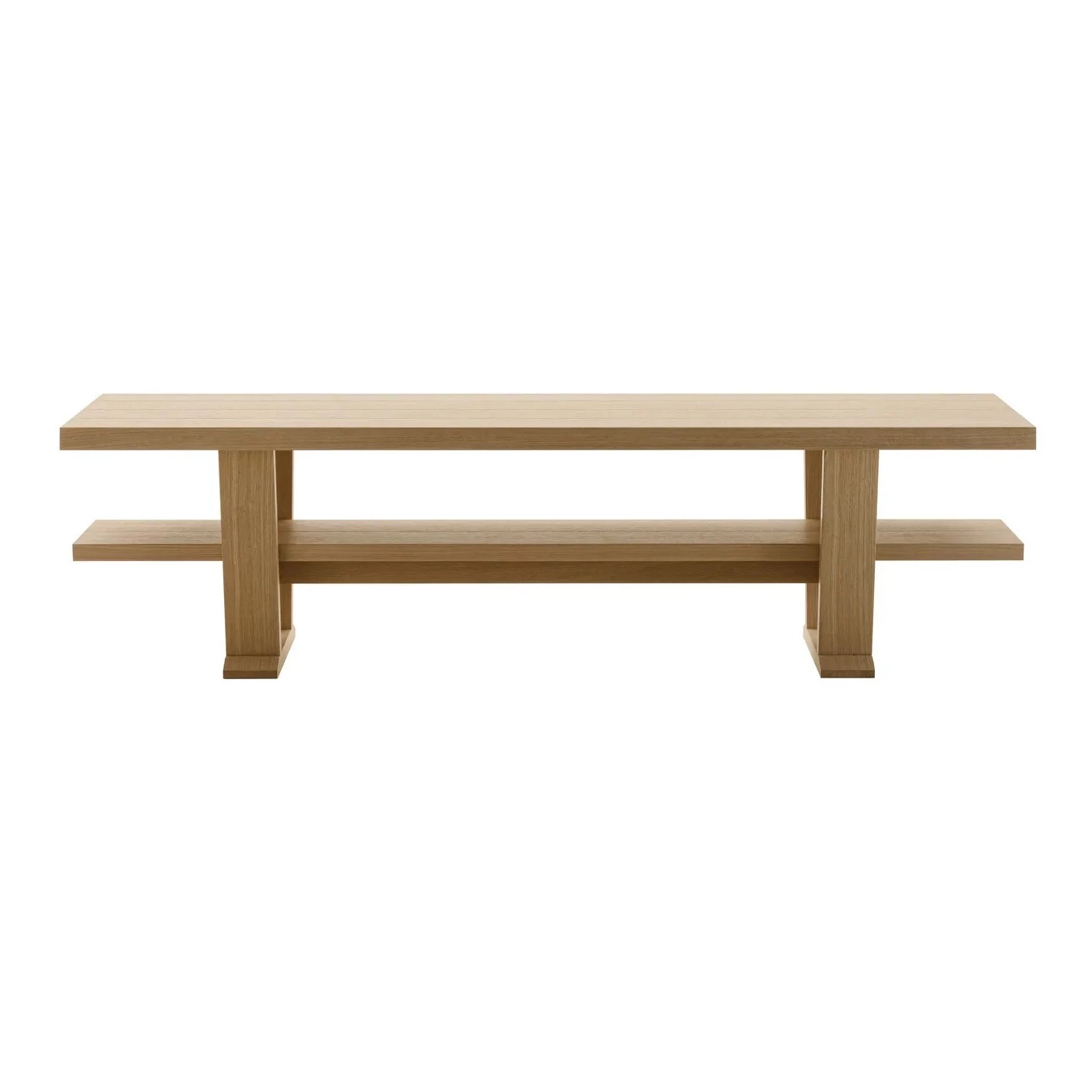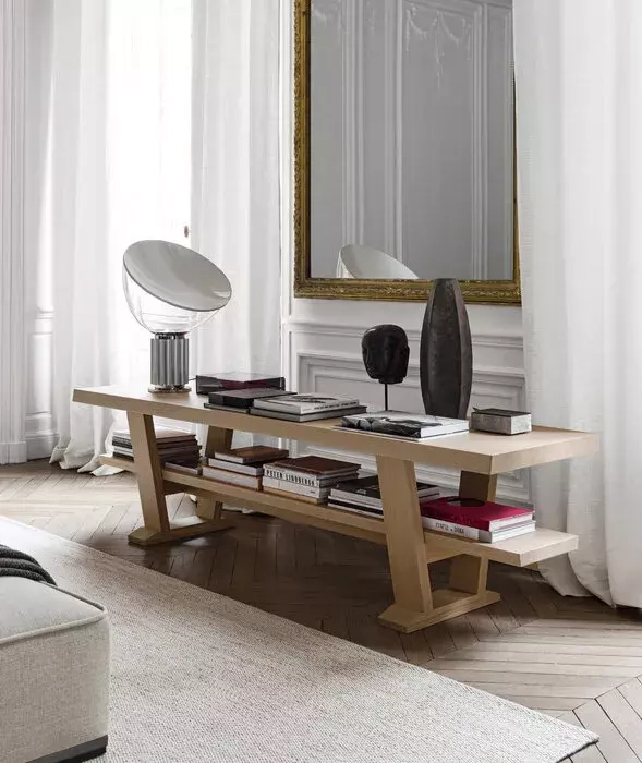 Una console interamente in legno con un caratteristico design minimale che mette in evidenza la preziosa struttura a cavalletto in legno massello.