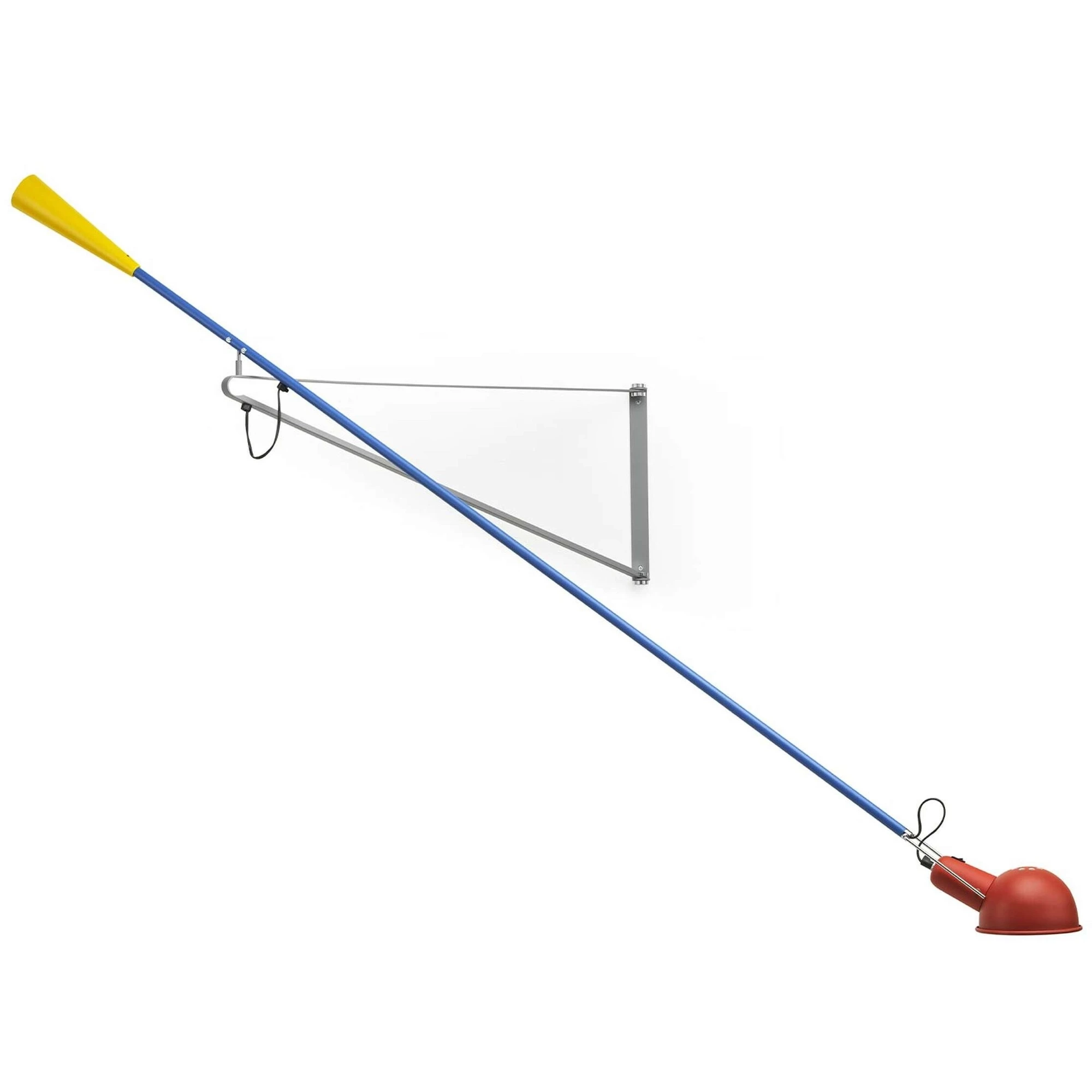 Lampada da parete che fornisce luce diretta. Braccio regolabile e riflettore in acciaio verniciato. Supporto riflettore in ottone cromato. Contrappeso conico in ghisa. Fissaggio a parete in acciaio verniciato.