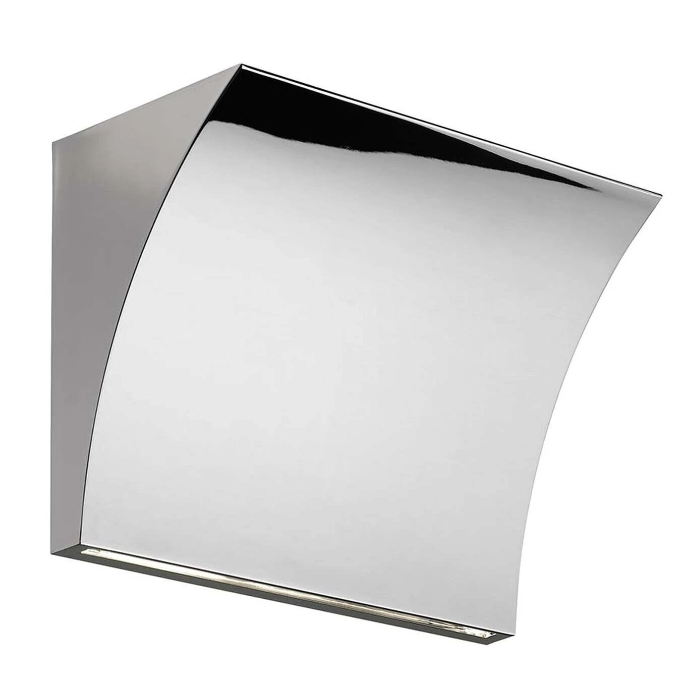 Lampada da parete che fornisce luce diretta/indiretta. Struttura in lega di Zamak pressofusa, finitura grigio opaco, bianco lucido o cromata. Attacco a parete in acciaio stampato, zincato bianco, contenente il sistema di attacco a parete e i dispositivi elettrici.