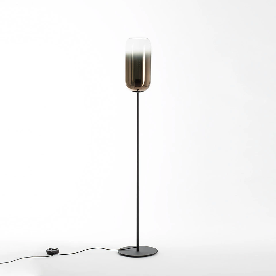 La forma base della Lampada Gople esalta la bellezza del vetro, lavorato a mano secondo un'antica tecnica veneziana che trasforma gradualmente il vetro bianco in cristallo unendo entrambi durante la soffiatura, rendendo così ogni pezzo unico. Vengono aggiunte finiture più innovative, inclusa la metallizzazione sotto vuoto argento o rame.