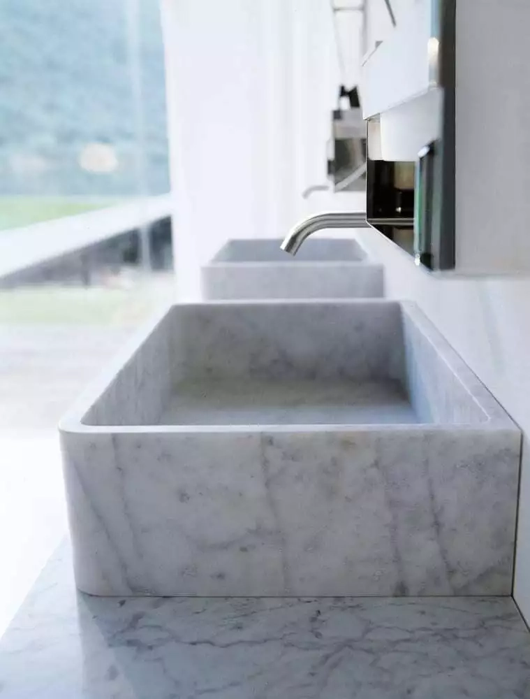 Lavabo rettangolare da appoggio in marmo di Carrara bianco, marmo carnic grigio, marmo Marquina nero, marmo Alpi verde o marmo Emperador scuro, senza troppopieno. Progettato per lo scarico .MET0563.