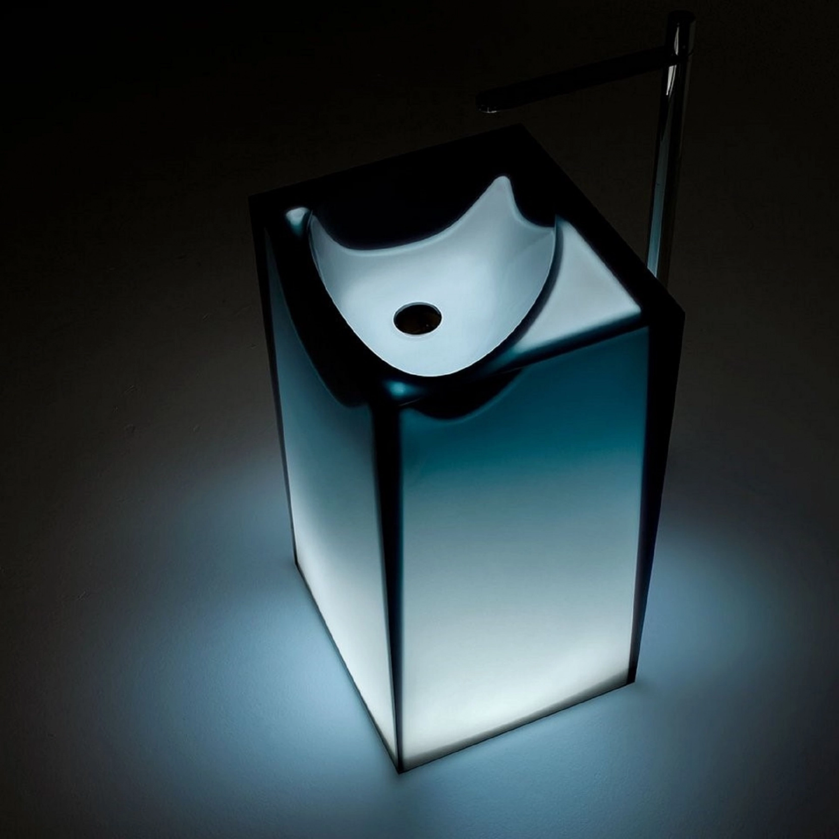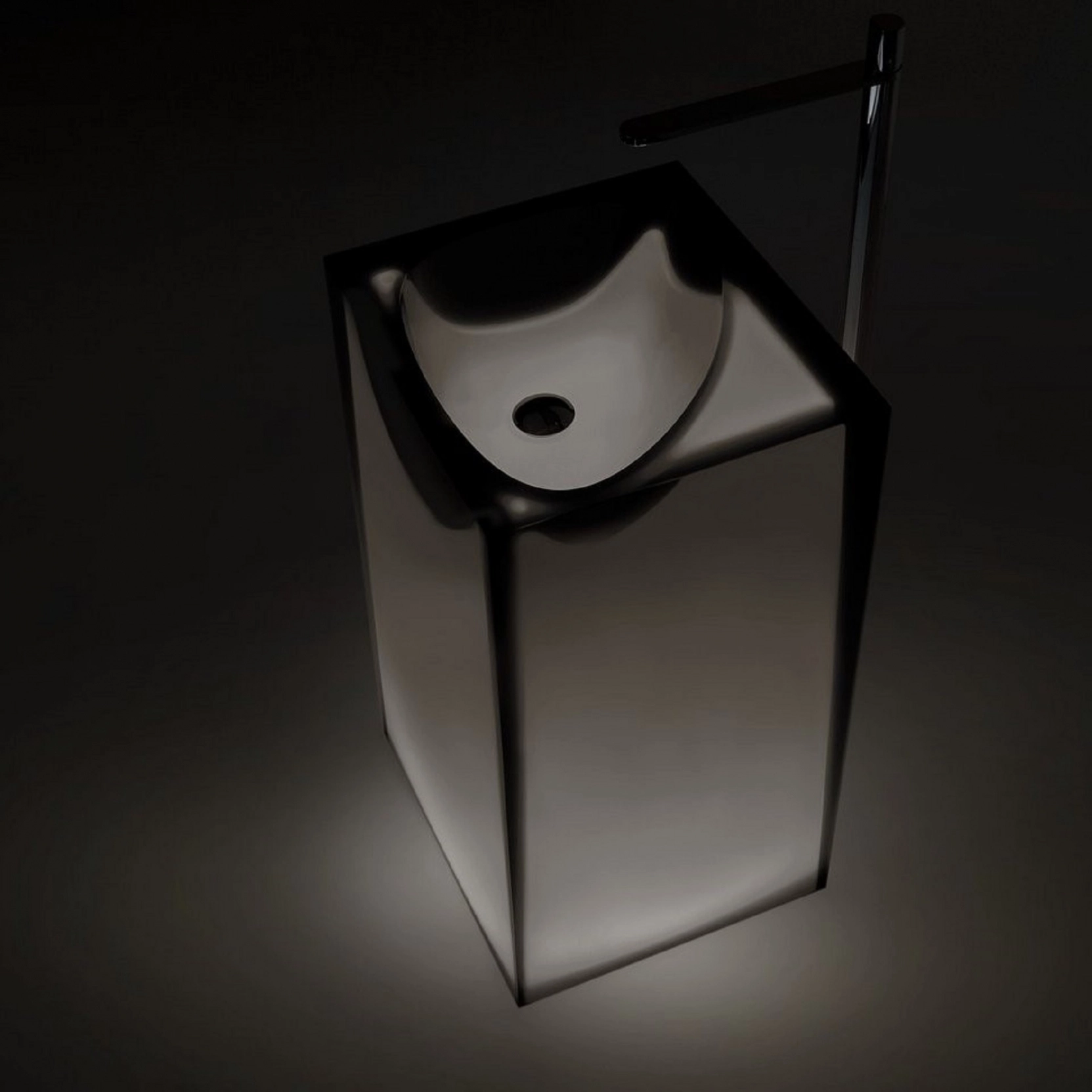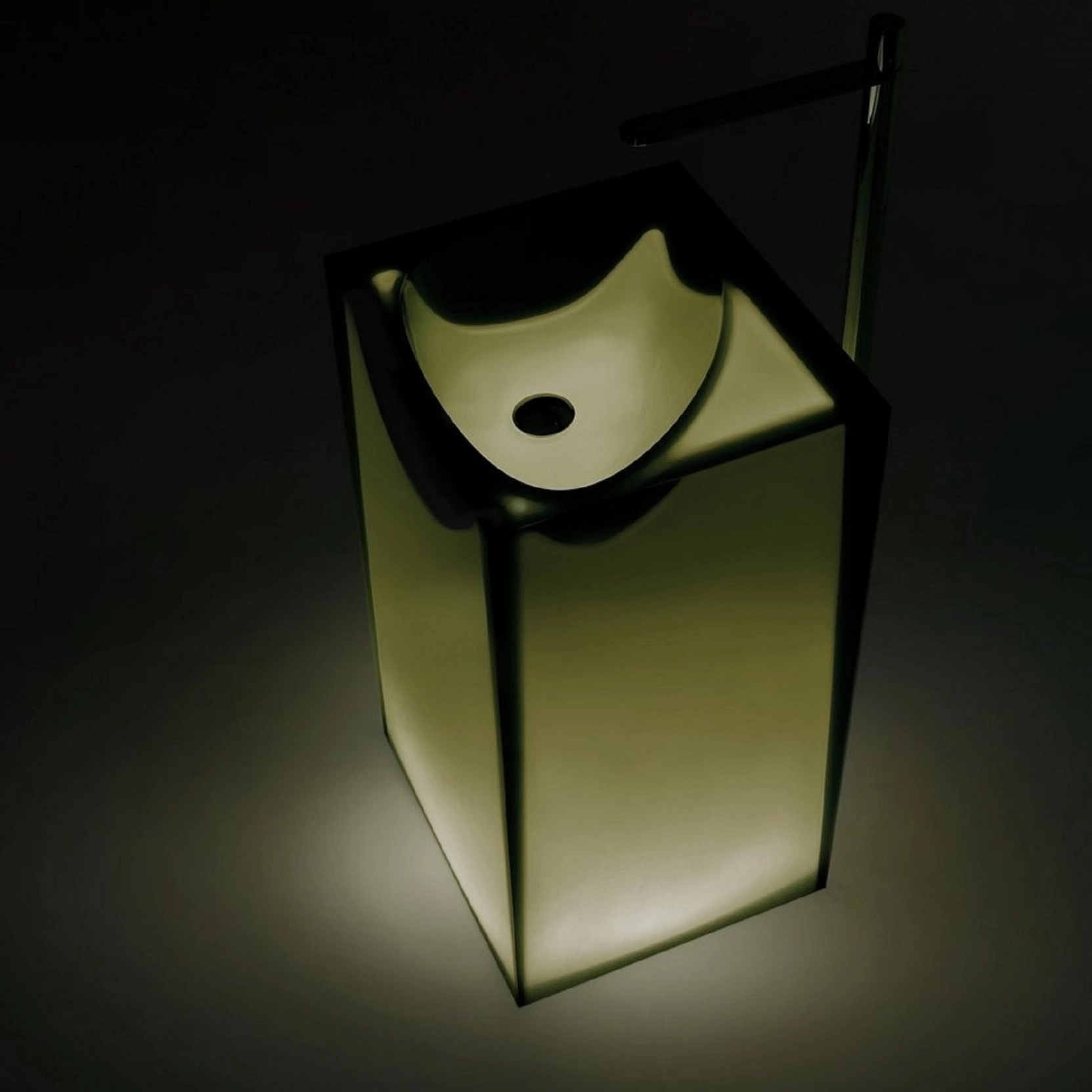 Lavabo da terra in Cristalmood con scarico a pavimento, disponibile in diversi colori come da nostro campionario, con fusto opaco completo di piletta a scarico libero, sifone e tubo rigido..Delivery: 8-12 weeks