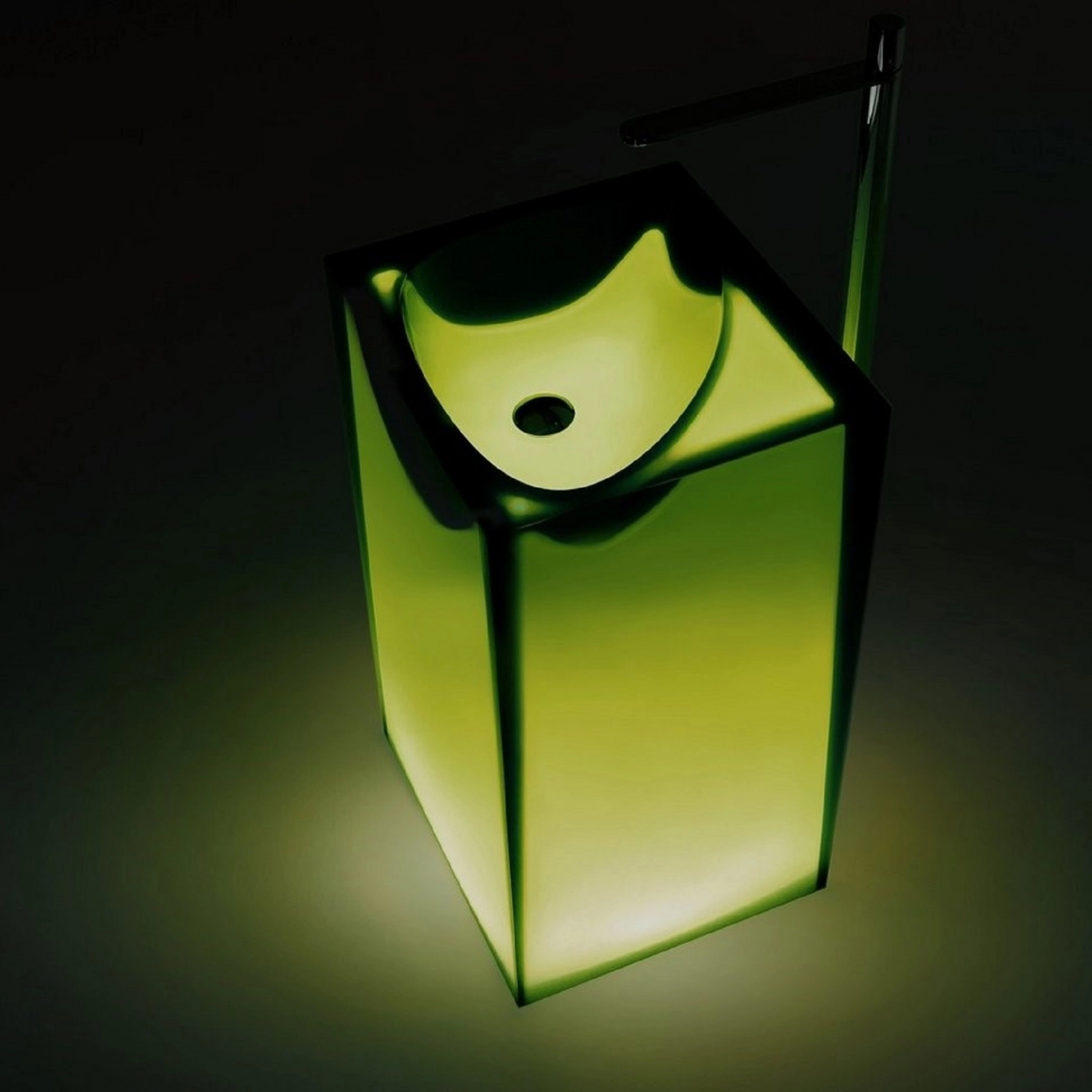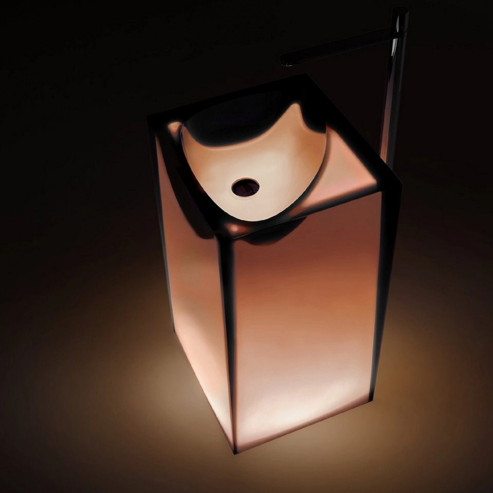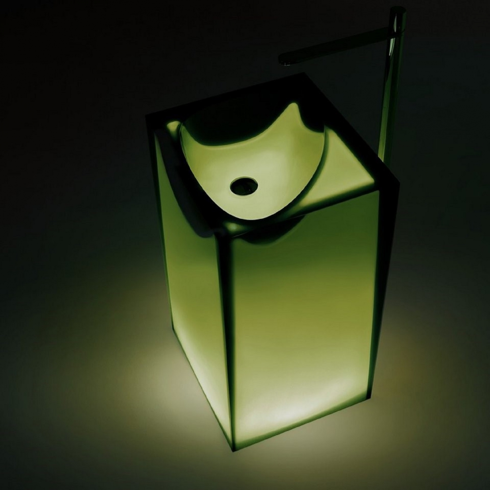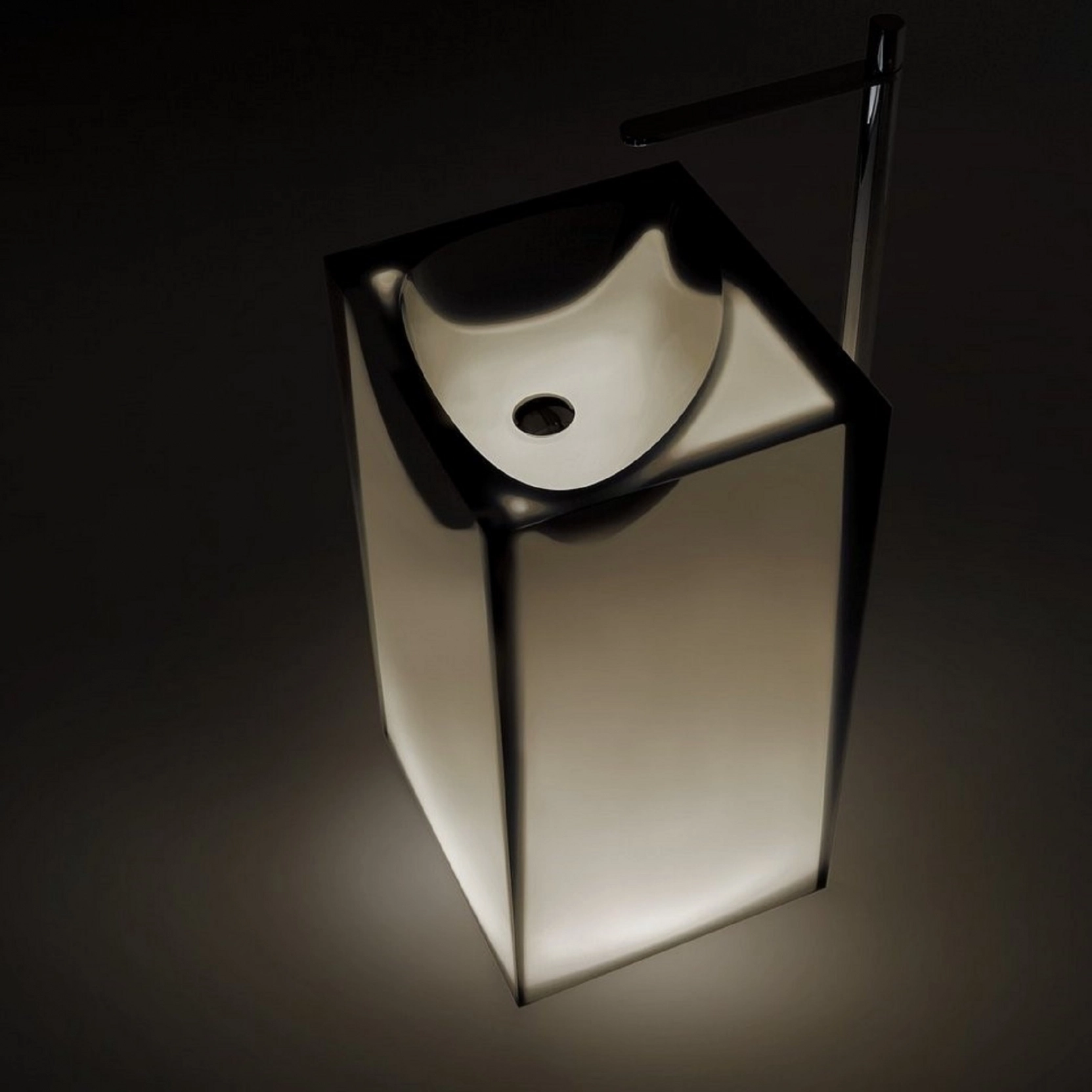 Lavabo da terra in Cristalmood con scarico a pavimento, disponibile in diversi colori come da nostro campionario, con fusto opaco completo di piletta a scarico libero, sifone e tubo rigido..Delivery: 8-12 weeks