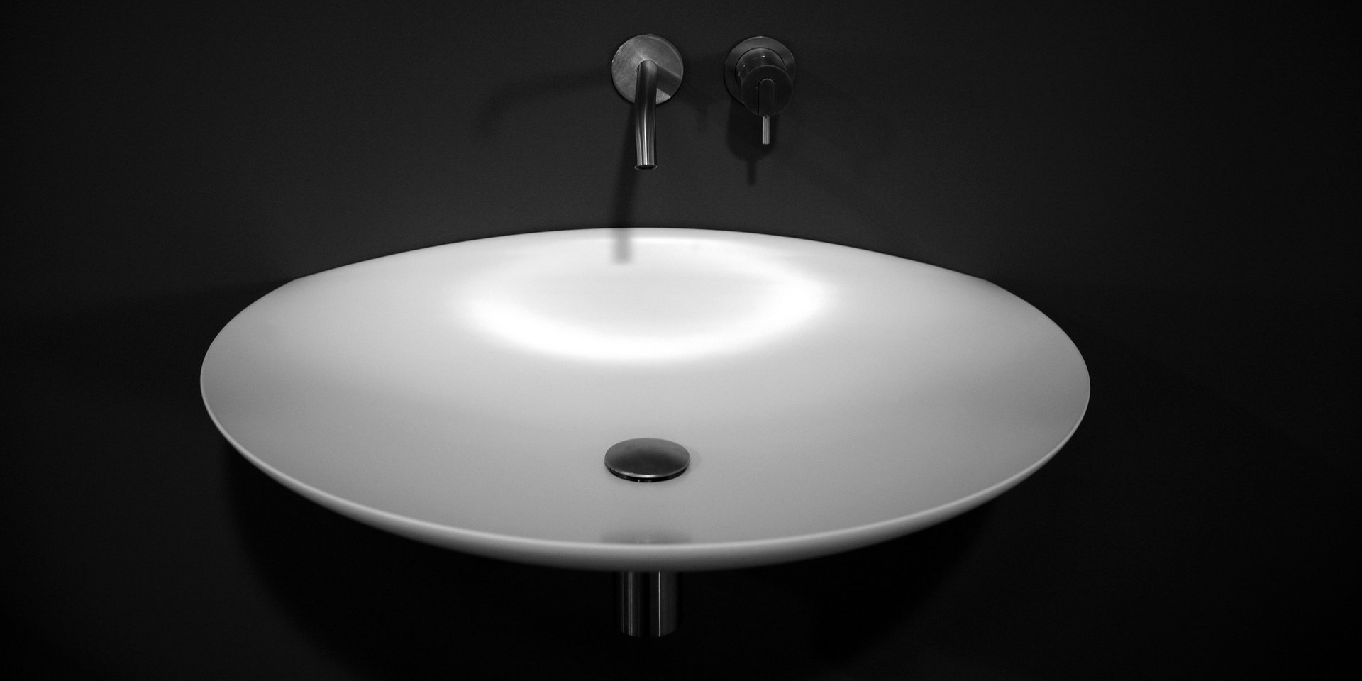 Lavabo ovale soprapiano (A) o da parete (B) in Flumood completo di piletta con scarico libero e raccordo per sifone..Delivery: 8-12 weeks