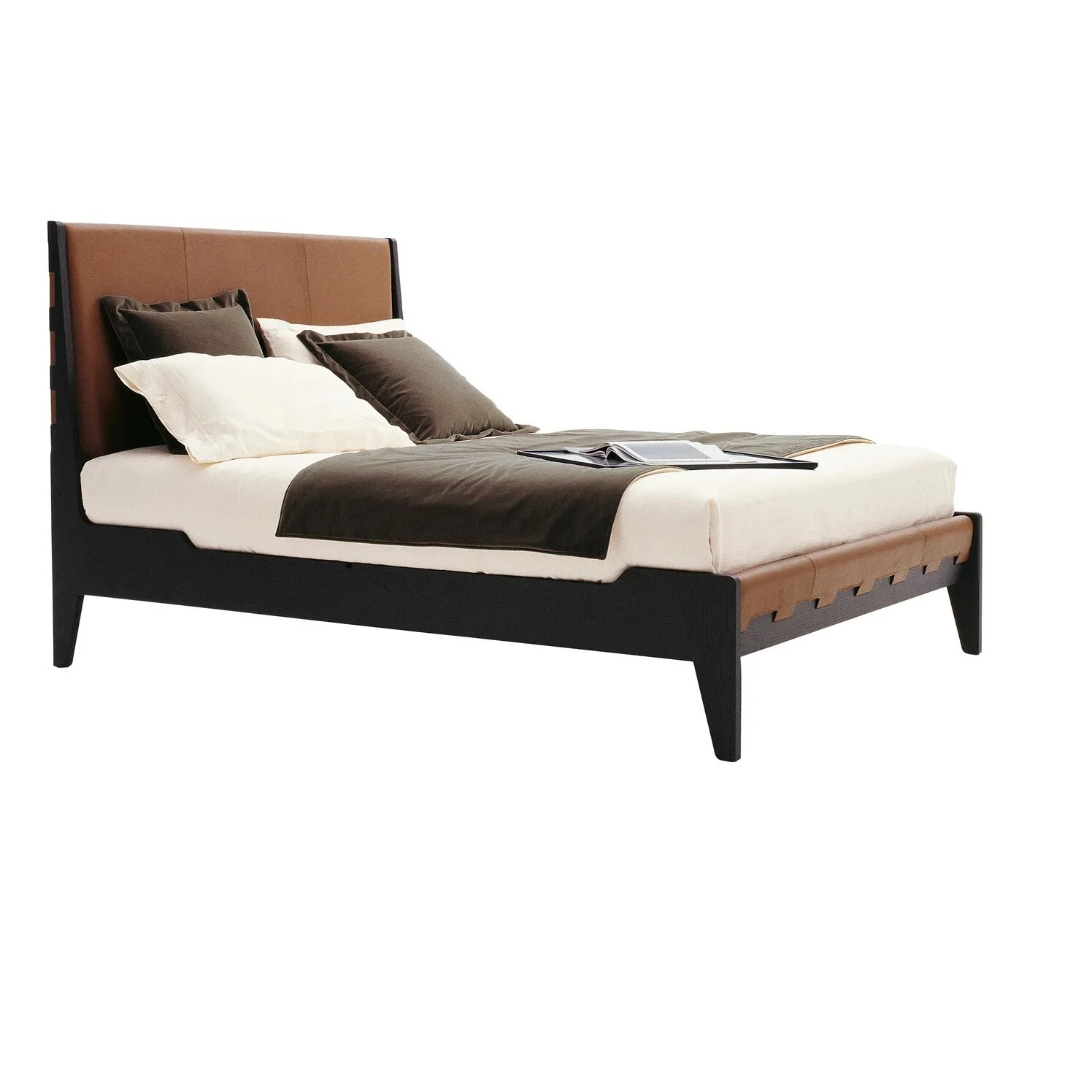Un letto matrimoniale con una linea pulita e proporzioni perfette, Talamo combina materiali di lusso con un raffinato gioco di dettagli, come la combinazione di fasce in pelle sulla copertura con la forma insolita della struttura in legno, disponibile in diverse finiture.