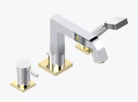 Miscelatore per vasca/doccia a 3 fori montato sul bordo, deviatore a beccuccio goliath con miscelatore ceramico e set doccia