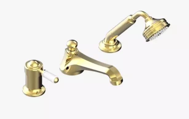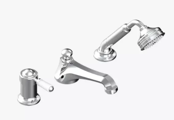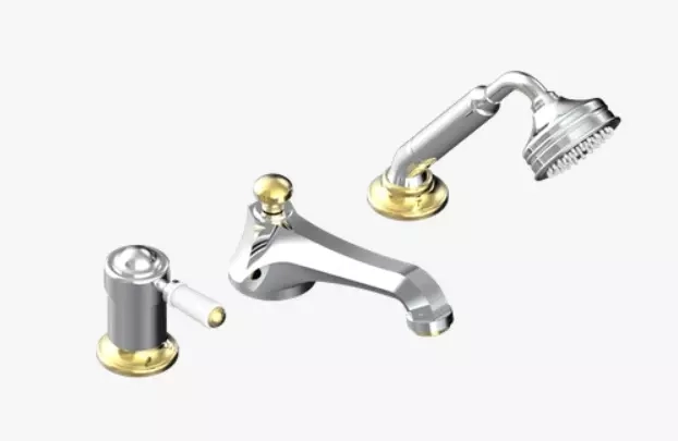 Miscelatore per vasca/doccia a 3 fori montato sul bordo, deviatore a beccuccio basso goliath con miscelatore ceramico e set doccia