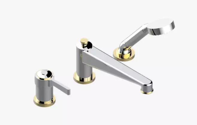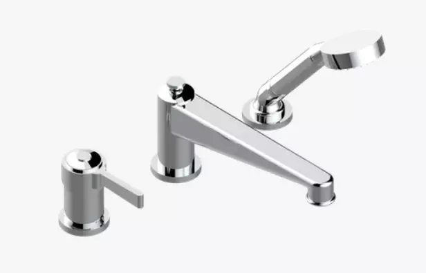 Miscelatore per vasca/doccia a 3 fori montato sul bordo, deviatore a beccuccio super goliath con miscelatore ceramico e set doccia