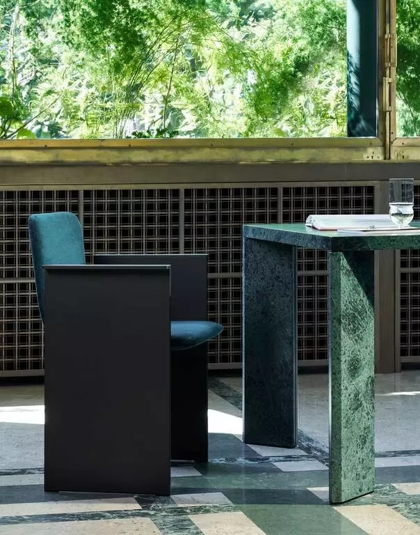 Ispirazione: i movimenti precisi, impeccabili ed eleganti del pattinaggio artistico. Forma: un ossimoro di materiali e spessori. Flutz è la perfetta fusione di una struttura rigida e geometrica e di una seduta morbida e accogliente. In questo, il secondo progetto di Michael Anastassiades per Cassina, i braccioli della sedia sono composti da due sottili fogli di alluminio paralleli, collegati da traversine su cui si trova una piastra invisibile che serve a stabilizzare la base e a sostenere la seduta che, quindi, appare sospesa. Rivestita in pelle o tessuto removibile, la sedia garantisce un supporto robusto ma confortevole, grazie alla conchiglia avvolta in morbida imbottitura e racchiusa in un'imbottitura in PET riciclato. Basandosi sul lavoro svolto da Cassina LAB, con un occhio alla circularità, le varie parti sono state progettate per essere smontate e riciclate alla fine del ciclo di vita della sedia. Questo include la tappezzeria, che può essere separata dall'imbottitura racchiusa grazie a una cerniera interna, e la struttura metallica con finitura opaca, disponibile in tre colori drammatici: alluminio con finitura in polvere in antracite o nero, o anodizzato naturale. Comoda ed elegante, Flutz si abbina perfettamente al tavolo Ordinal, anch'esso del designer cipriota, completando la sua linea di prodotti da pranzo.