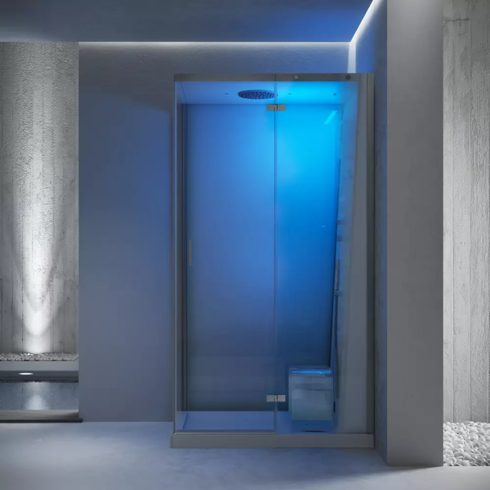Cloud 120 è una vera e propria spa quotidiana che offre percorsi personalizzati di benessere con getti d'acqua mirati e due sequenze programmate, intense o delicate, accompagnate da un'illuminazione colorata d'atmosfera.