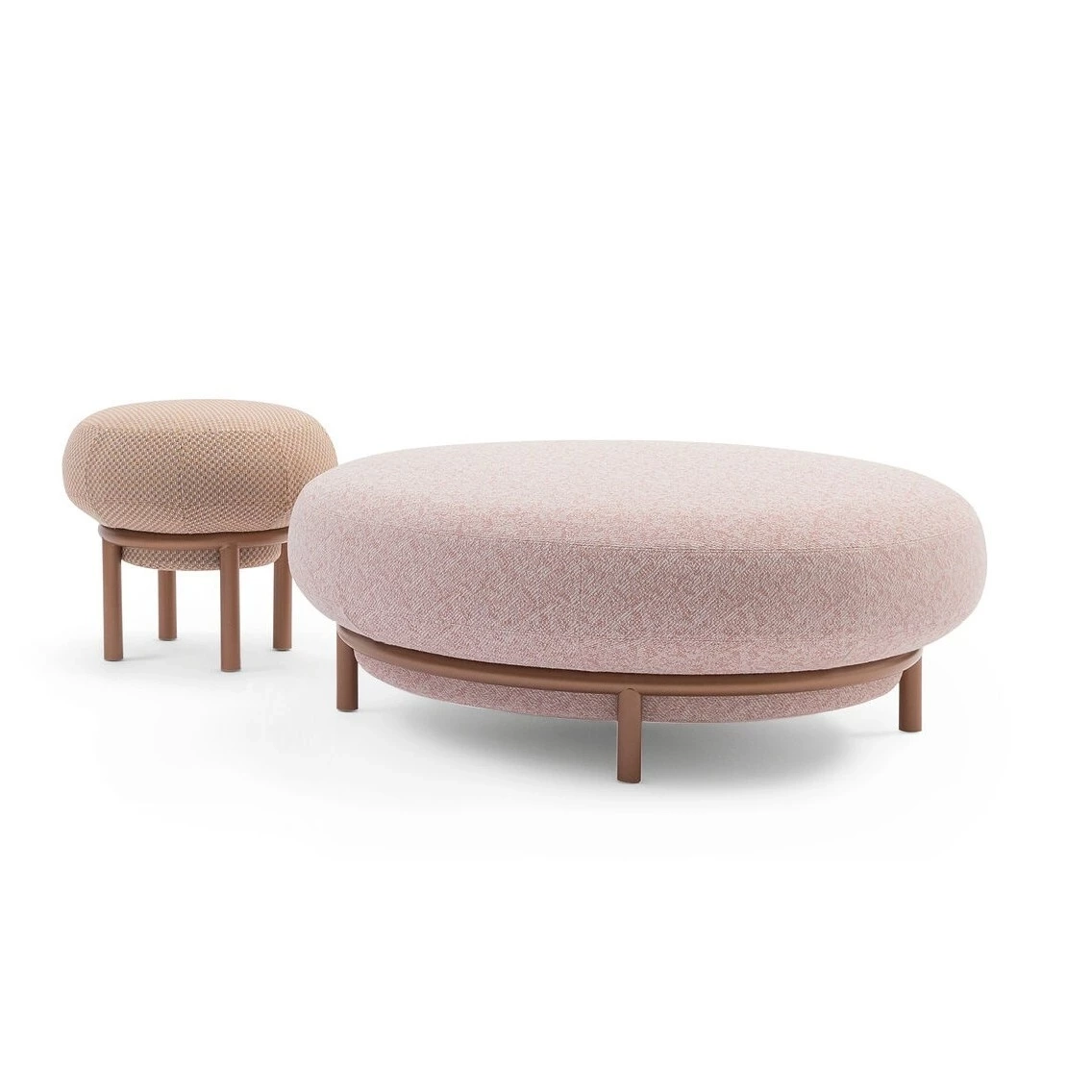 Nell'antica arte botanica del bonsai, un tronco di grandi dimensioni sostiene e dialoga con una chioma sagomata con arte. Allo stesso modo, i pouf Bonsai sono il risultato di una ricerca per armonizzare i volumi dell'imbottitura e le dimensioni delle strutture: una struttura tubolare metallica essenziale, ma con una sezione ampia, accoglie e supporta una comoda seduta dalle forme morbide e arrotondate, che valorizza la scelta del tessuto o della pelle utilizzati per l'imbottitura. Disponibili in quattro diverse dimensioni e altezze, ciascuno dei pouf Bonsai può essere scelto come pezzo unico o combinato in gruppi, unendo liberamente elementi multipli nell'area giorno, nella camera da letto o in aree di hotel o spazi pubblici destinati all'accoglienza.