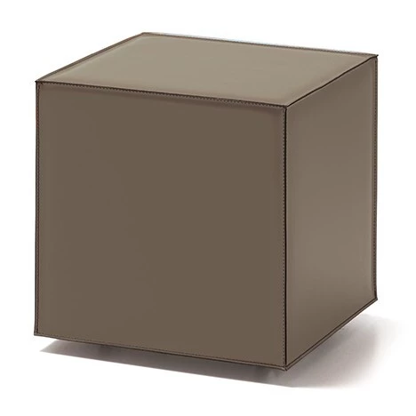 Pouf su ruote completamente rivestito in pelle come da campionario. Cuciture a contrasto.