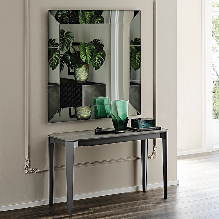 Specchio da parete con cornice specchiata o tutta fumé. Non adatto per essere posato a terra. Lo specchio è dotato di piastre per l'installazione orizzontale o verticale.