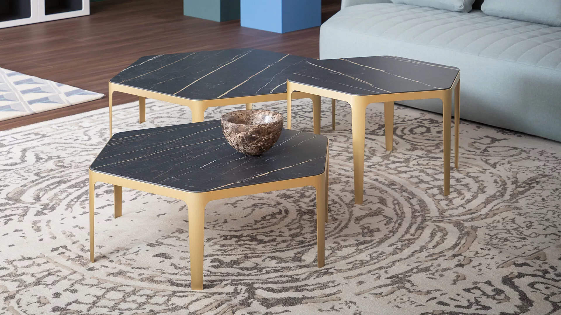 La collezione Panorama di tavolini da caffè e prodotti imbottiti si basa su un elemento specifico che può essere considerato la vera unità di misura del sistema: la forma esagonale che si combina con altri elementi per ottenere le più diverse configurazioni. "Spero che Panorama crei connessioni: è stato progettato appositamente per creare spazi collettivi," spiega il designer Fabrice Berrux. Disponibili in quattro dimensioni, per creare configurazioni sempre nuove, i tavolini da caffè Panorama sono elementi geometrici, con telai in metallo verniciato impreziositi da un piano in ceramica. Personalizzazione e creatività raggiungono la massima espressione in questa collezione, e i risultati che si possono ottenere sono assolutamente senza precedenti.