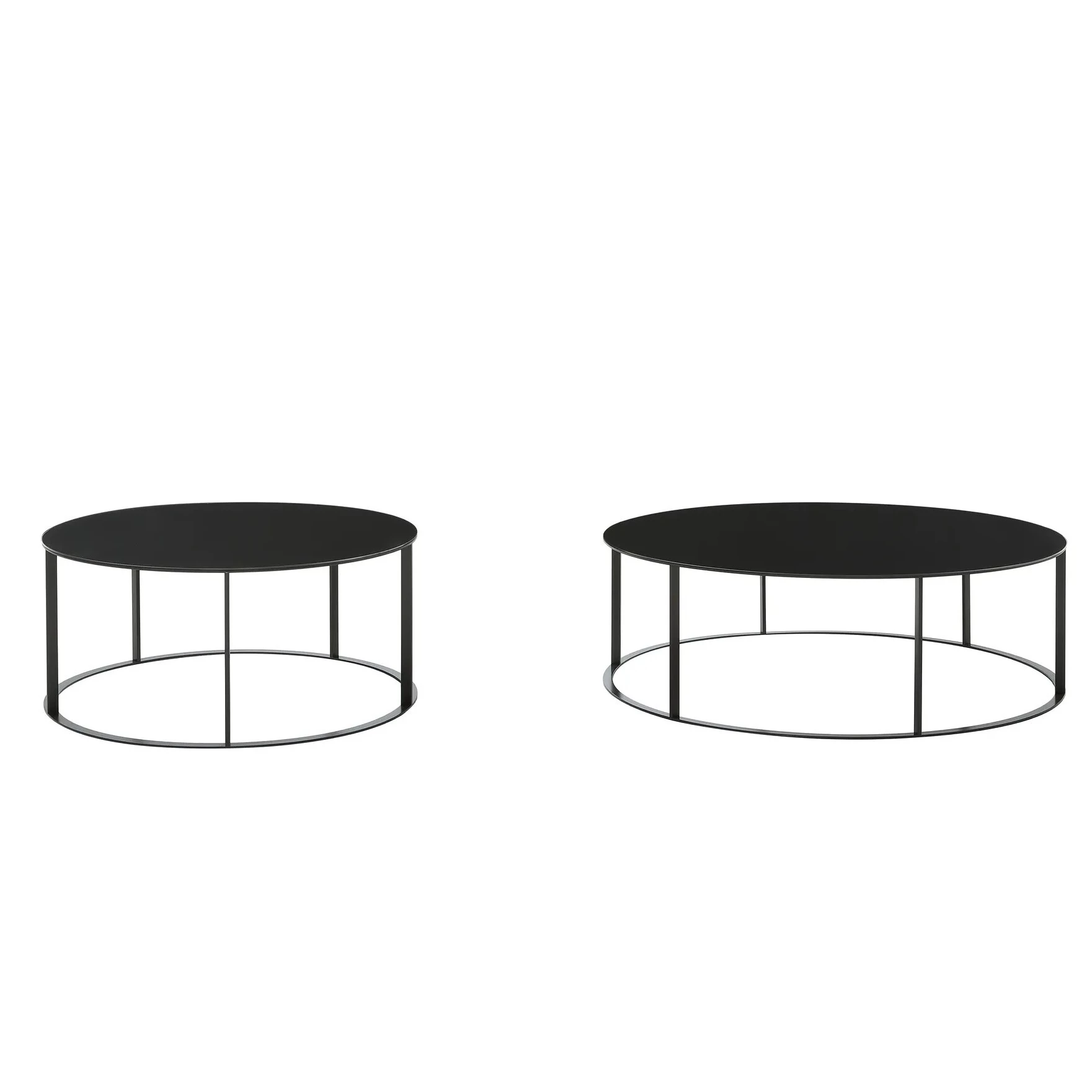 Eleganti tavolini multiuso con piano rotondo, quadrato e ovale. Le versioni quadrate sono disponibili in altezze gradualmente decrescenti; le versioni rotonde offrono un pouf con piano in legno.