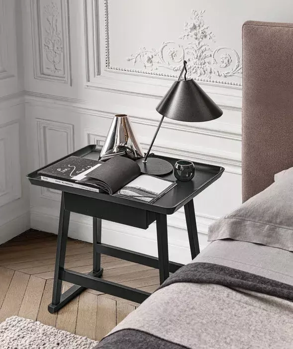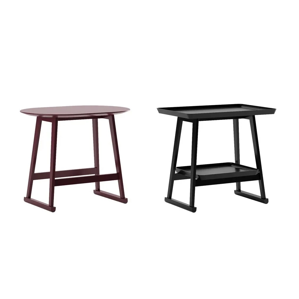 I tavoli Recipio sono essenzialmente progettati come comodini, eppure sono sufficientemente versatili da adattarsi a qualsiasi stanza della casa. Si distinguono per la loro struttura a tre gambe che ospita piani a forma di vassoio. Questi tavoli sono disponibili in una varietà di finiture e colori.