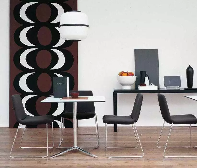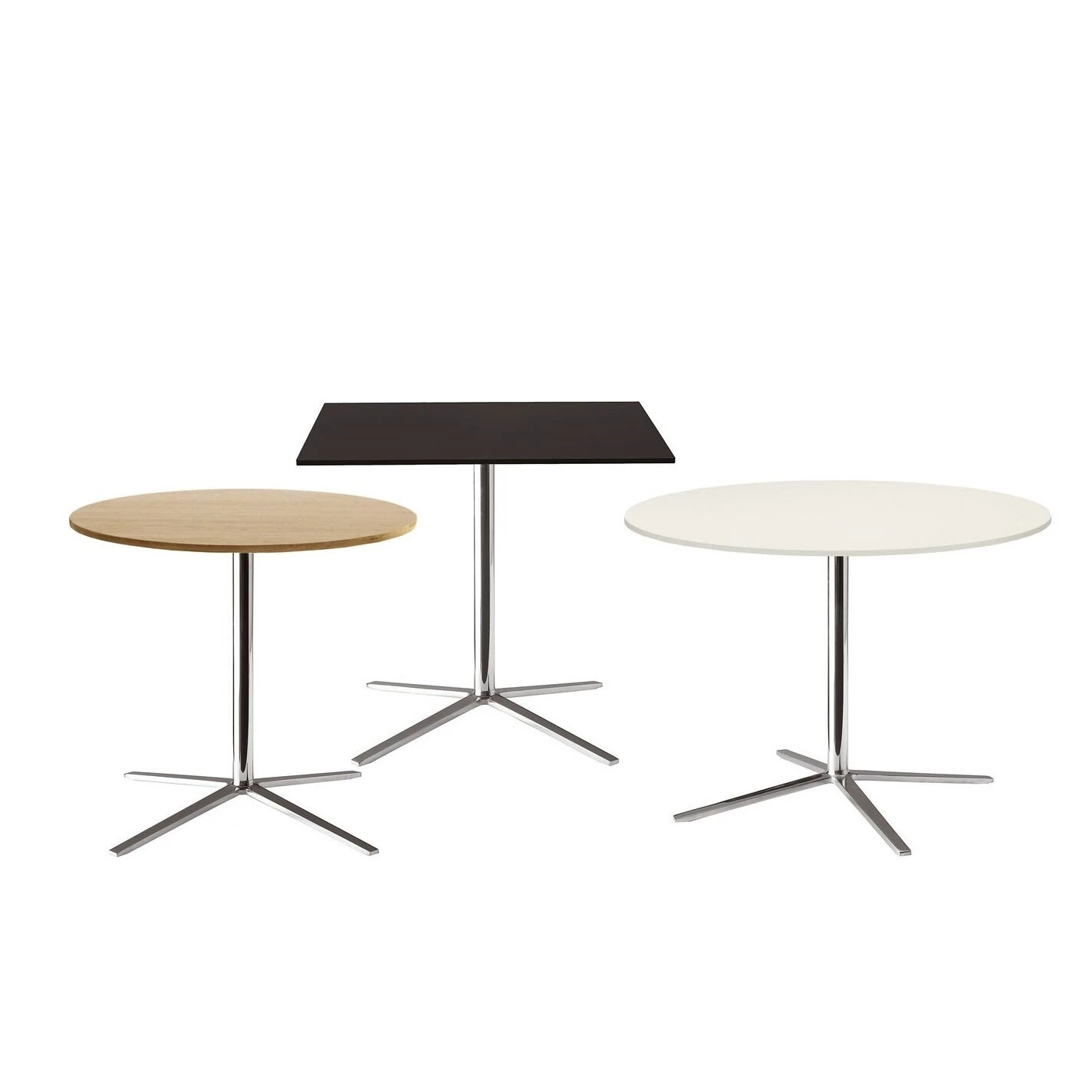 Cosmos è una serie di tavoli rotondi e quadrati di diverse dimensioni, tutti accomunati dalla stessa struttura a raggi in alluminio. I piani sono disponibili sia in laminato che in rovere in diverse finiture. Armoniosamente minimalisti, sono abbinabili tra loro, adattandosi con disinvoltura a diversi utilizzi in ambito domestico e contract.