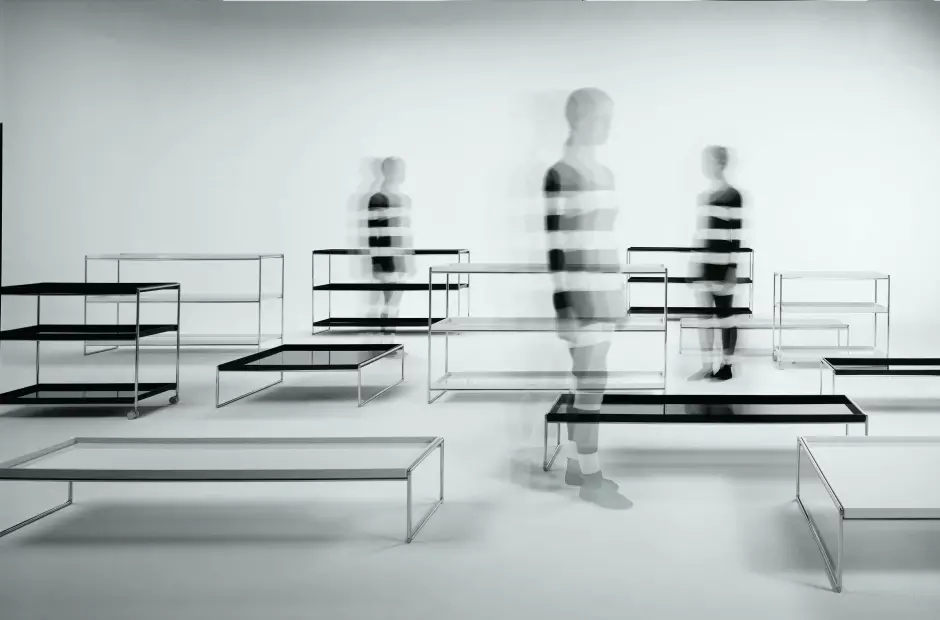 Si tratta di un sistema articolato di superfici di tavolo per la casa o l'ufficio. Il concetto costruttivo del design si basa su tavoli e sistemi di scaffalature item1:S95210, con motivi e finiture che ricordano vassoi giapponesi laccati.