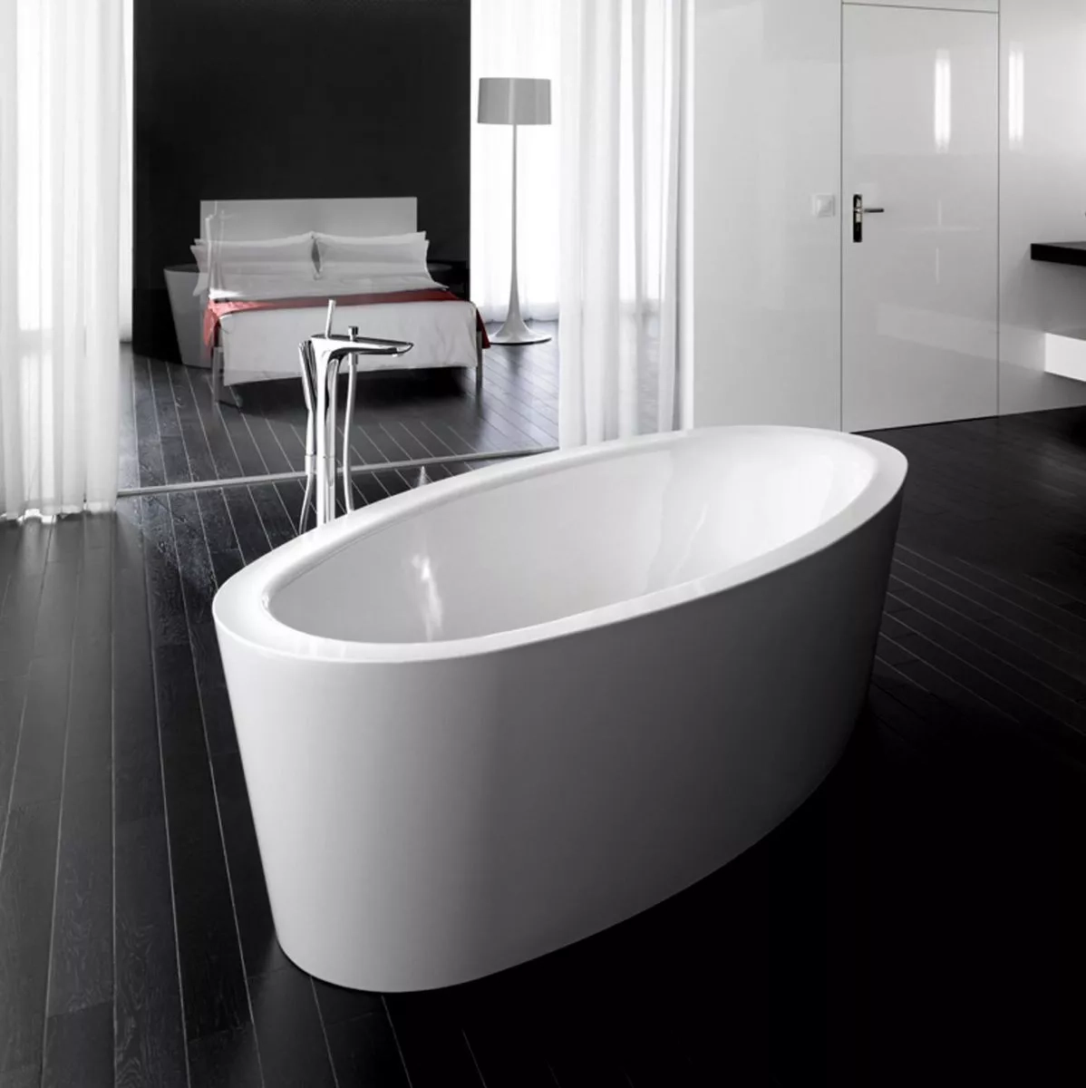 I corpi interni ed esterni della vasca sono uniti in modo fluido con grande abilità e maestria per creare un'unità sicura e armoniosa. Il corpo interno a forma ovale con lo schienale simmetrico offre un comfort unico durante il bagno. Lo scarico posizionato centralmente rende il bagno à deux altrettanto confortevole. Whirlsystems su richiesta.