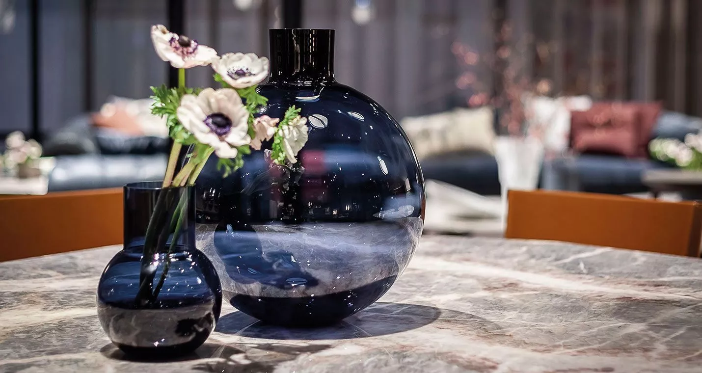 Il vaso Blue Pallo è stato progettato per Skruf, i storici vetrai svedesi specializzati in vetro soffiato di alta qualità, e realizzato esclusivamente per Poltrona Frau nel particolare colore blu notte. Un colore profondo che esalta la bellezza del vetro soffiato a mano, offrendo uno scorcio della sua trasparenza. Diversi vasi possono essere posizionati uno accanto all'altro per creare sorprendenti sovrapposizioni ed effetti luminosi. Il logo di Poltrona Frau e la firma del designer sono incisi sul fondo del vaso.