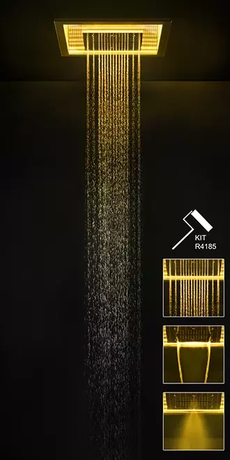Zewnętrzne części do wielofunkcyjnego systemu prysznicowego z chromoterapią. Funkcje DESZCZ/ WODOSPAD/ MGŁA. Gessi oferuje szeroki wybór armatury i przedmiotów łazienkowych, które mają na celu poprawę praktyczności i piękna współczesnych środowisk. Gessi tworzy szykowne i eleganckie środowisko łazienkowe, sprawnie łącząc styl i innowację.