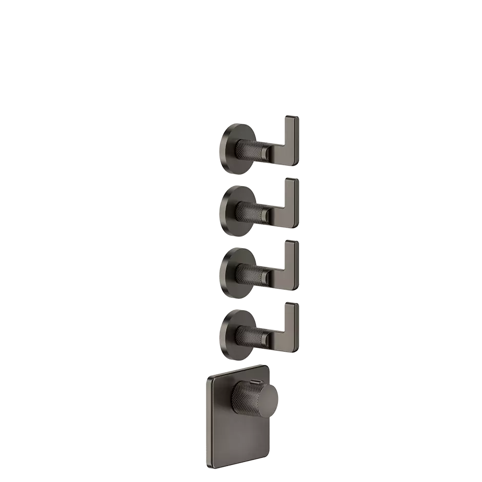 Zewnętrzne części do termostatycznego miksera o dużej pojemności montowanego na ścianie. Ustawienie pionowe/poziome z CZTEREMA ODDZIELNYMI WYJŚCIAMI. Seria Gessi Inciso łączy w sobie ponadczasową elegancję i nowoczesny design, oferując wykwintne armatury łazienkowe z wyraźnymi wzorami liniowymi i delikatnymi detalami. Oddanie Gessi dla doskonałej estetyki odzwierciedla się w tej kolekcji, która zapewnia harmonijną równowagę formy i funkcji dla osób poszukujących wyrafinowanego i eleganckiego otoczenia łazienkowego.