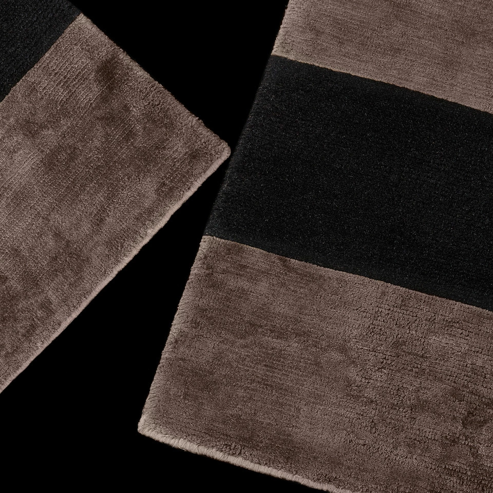Stripes to dywan w paski, klasyczny w kolekcji Poliform. Czarne linie są wykonane z jedwabiu bambusowego, podczas gdy te w naturalnych odcieniach są z wełny himalajskiej.