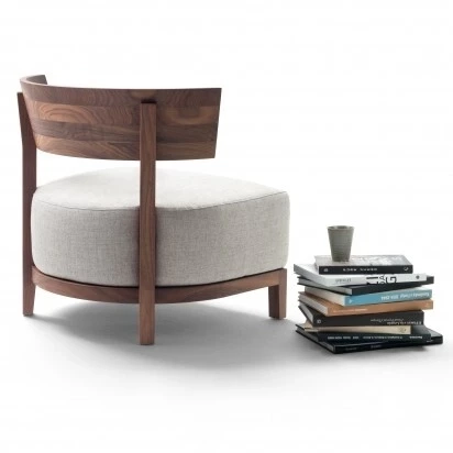 Zaprojektowany w roku 2000, jego wrodzona elegancja sprawiła, że fotel Thomas stał się jednym z absolutnych bestsellerów w linii produktów Flexform. Wyściełany pianką poliuretanową i Dacronem, solidna poduszka siedziska spoczywa na wyrafinowanej zakrzywionej podstawie z drewna. Smukłe, a jednocześnie funkcjonalne półokrągłe oparcie siedziska wykonane jest z wysokiej jakości orzecha Canaletto lub jesionu barwionego w różnych odcieniach, lub w połyskującym wykończeniu lakieru w szerokiej gamie wyrafinowanych kolorów. Dzięki swoim łagodnym liniom i kompaktowym proporcjom, fotel Thomas jest prawdziwie wszechstronnym elementem, który można łatwo zestawić z dowolną sofą z kolekcji Flexform.