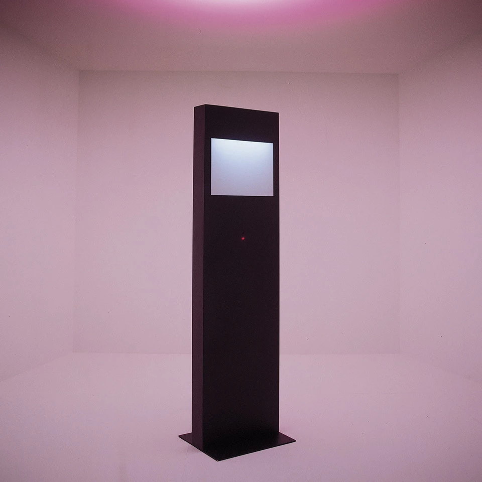 Stal malowana proszkowo; ekrany dyfuzora z metakrylanu opalizującego. Trzy projektory z filtrami dichroicznymi czerwonym, zielonym i niebieskim, pozwalają na stworzenie szerokiej gamy atmosfer o różnych kolorach światła, a czwarty projektor emituje światło białe. Za pomocą pilota można wybrać 12 standardowych atmosfer, stworzyć i zapamiętać inne 86 oraz regulować intensywność światła.