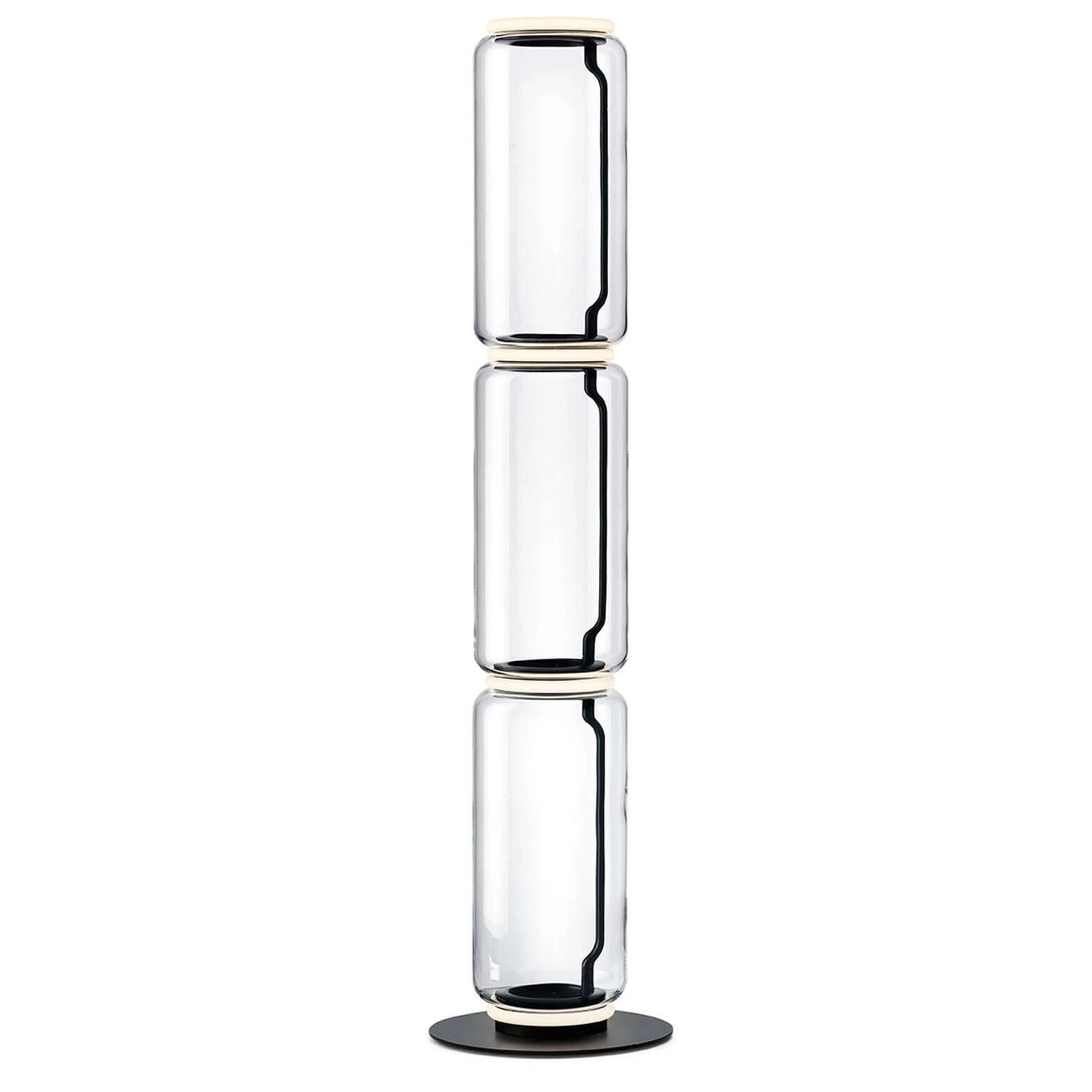 Lampy stojące składające się z łączących się modułów szklanych osiągających wysokość 2,17 metra (85,43"). Cylindryczna i półkulista przezroczysta struktura dmuchanego szkła, odlewanego aluminium podstawa i pierścienie, wewnętrzne ramiona boczne ze stali hydroformowanej i zewnętrzne pierścienie dyfuzorów z silikonu optycznego opalowego wtryskowego. Kabel zasilający ma długość 2 metrów (78,74"), z panelem obsługiwanym pedałem używanym jako regulator do regulacji intensywności światła od 10% do 100% w obu kierunkach. Zasilanie naściennie z wymiennymi wtyczkami.