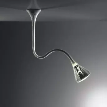 Elastyczna stalowa konstrukcja pomalowana, pokryta naturalną silikonową obudową, różowy sufitowy i dyfuzor z transparentnego poliwęglanu pomalowanego efektem gumy; reflektor z aluminium lustrzanego z losowymi perforacjami; malowana stalowa płyta dolna. Nowy wewnętrzny dyfuzor reinterpretuje starą lampę fluorescencyjną, wykorzystując nowoczesne źródło światła LED, co gwarantuje taką samą wydajność optyczną przy mniejszym zużyciu energii i lepszej jakości światła.