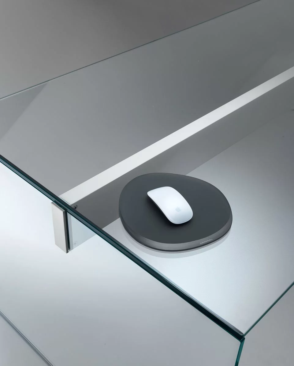 Podkładka pod mysz z hartowanego szkła z satynowaną powłoką zgodnie z próbkami. Logo Gallotti&Radice nadrukowane na fazie.