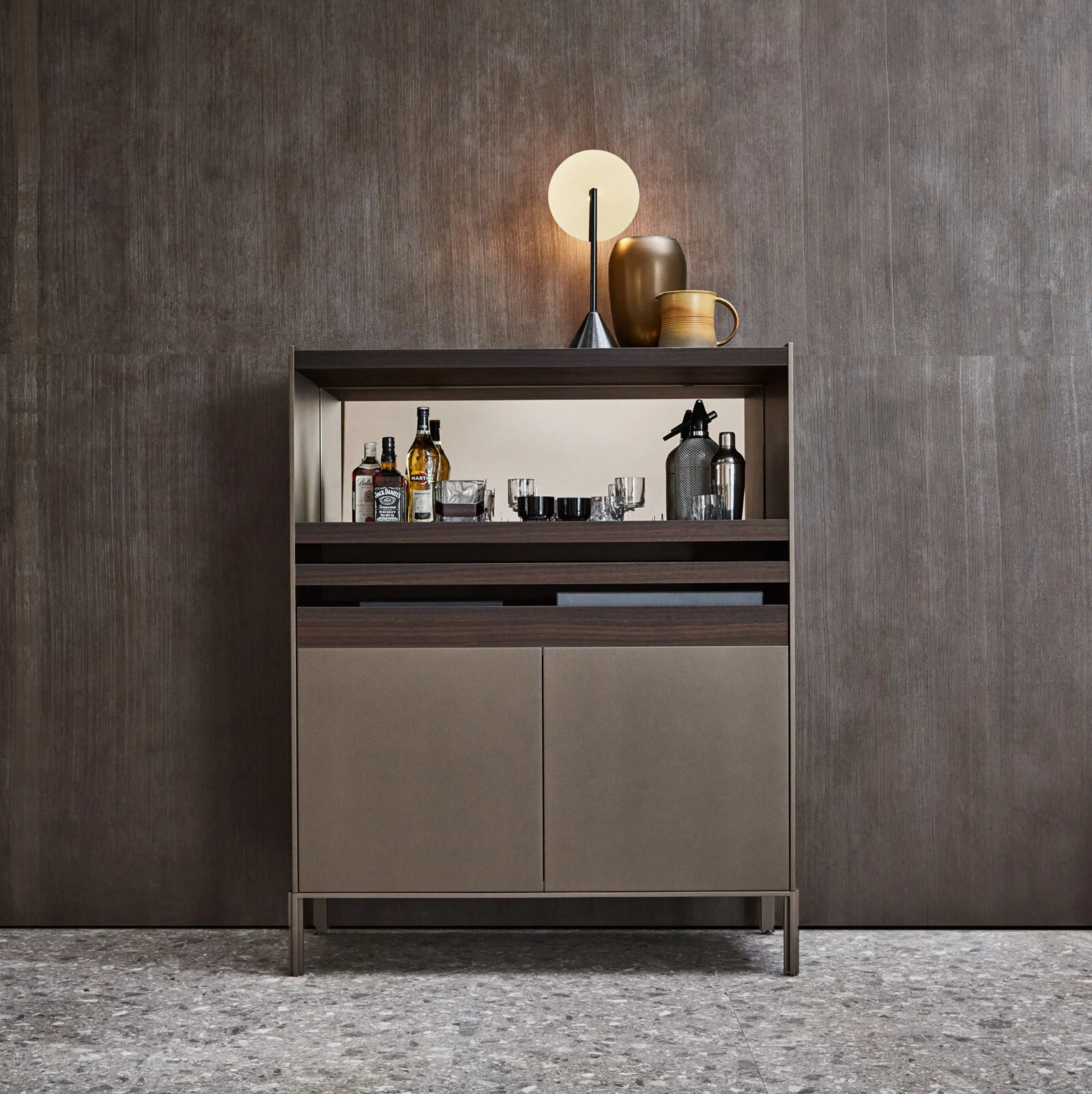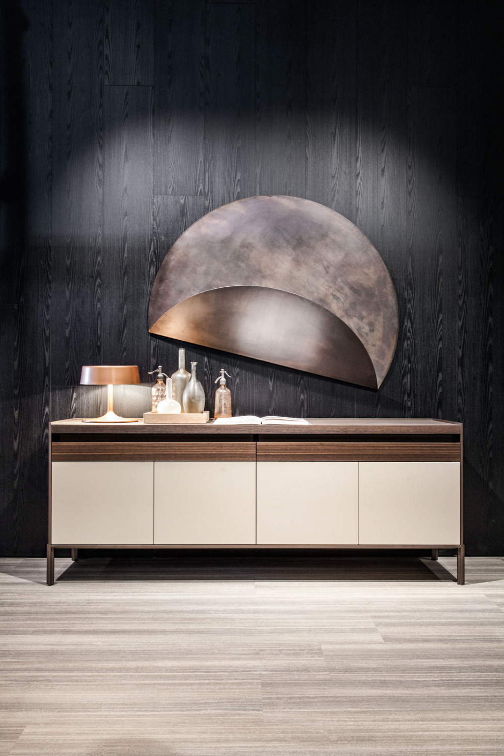 Quinten: doskonale proporcjonowane kredensy, starannie dobrany wybór materiałów i obróbki, takie jak matowe lub błyszczące drewno lakierowane oraz, w nowych wykończeniach, miedź lub cyna, a także uwaga na szczegóły zapewniają, że każdy pojedynczy mebel jest dziełem rafinowanej piękności, gdzie linie i objętości harmonijnie się łączą.