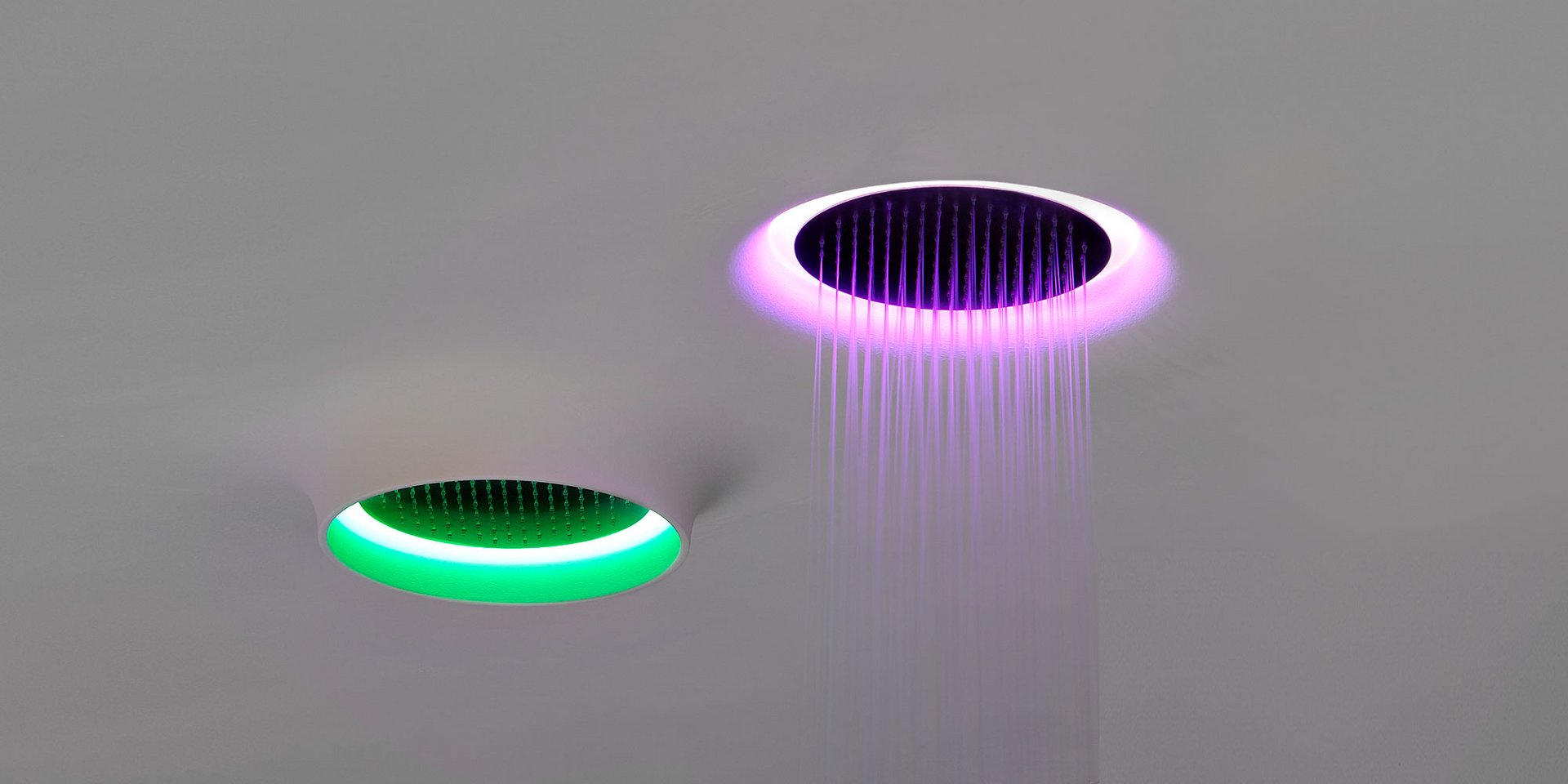 Ramka Flumood w suficie z satynową stalą nierdzewną AISI 304, z możliwością oświetlenia LED RGB, kompletna z wodoodpornym pilotem i transformator. Najnowsza ewolucja pryszniców Meteo eksploruje temat tajemnicy, zaskoczenia umiejętnościami technologicznymi, które znikają i ustępują miejsca emocjom. Okrągła tarcza, doskonale zintegrowana w suficie i otoczona pierścieniem światła. Obraz prysznica to integracja źródła w przestrzeni. Woda spada bezpośrednio z sufitu, kolorowe światło ogranicza projekcję, generując wiązkę nieskończonych wibracji i chromatycznych odbić. Poczucie dobrostanu jest kompletnie i obejmuje wszystkie zmysły.