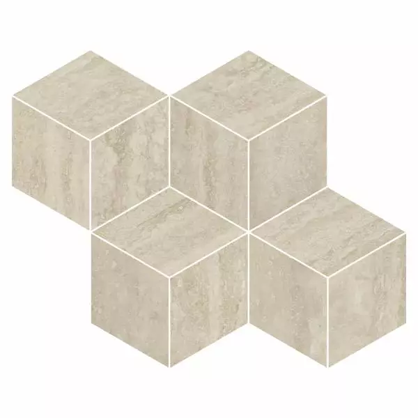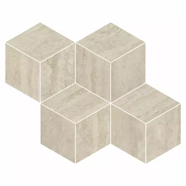 Refin Prestigio Travertino Beige Lucido Mosaico Cube R. OO30