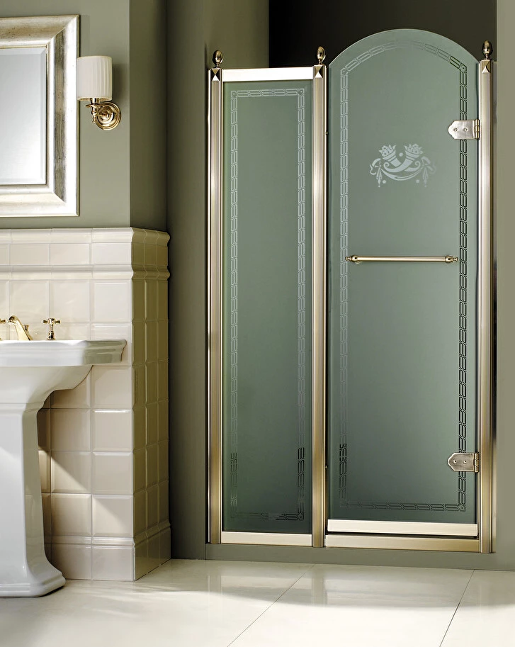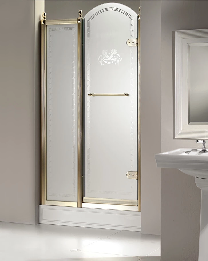 Ściana prysznicowa o wyrafinowanym designie, gdzie każdy element jest wynikiem niezwykłej wiedzy na temat materiałów i rzemiosła. Dostępne są z przezroczystym, matowym lub ozdobionym szkłem. Motyw można dostosować na życzenie z rysunkami, inicjałami lub logotypami.