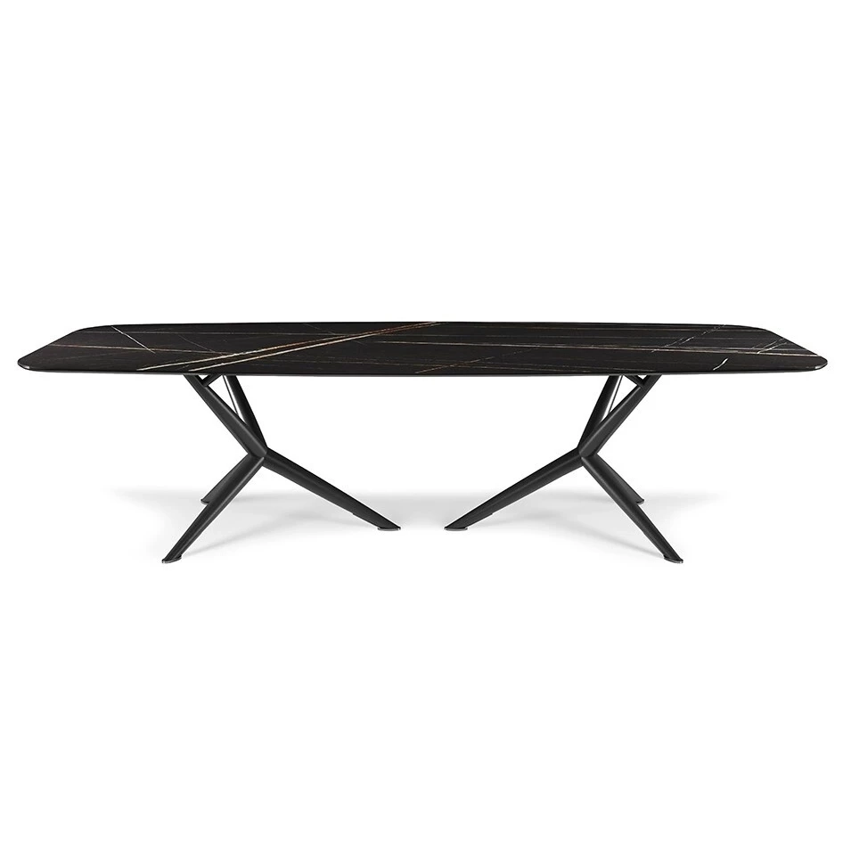 Stół z podstawą z lakierowanej stali w kolorze tytanu (GFM11), brązu (GFM18), grafitu (GFM69) lub czarnym (GFM73). Nóżki w czarnym chromie (06). Blat z ceramiki Marmi Alabastro (KM02), Supreme (KM03), Ardesia (KM04), matowego Golden Calacatta (KM05), błyszczącego Golden Calacatta (KM06), matowego Portoro (KM07), błyszczącego Portoro (KM08), błyszczącego Sahara Noir (KM09), Emperador (KM10), Makalu (KM11), Breccia (KM12) lub Arenal (KM13).