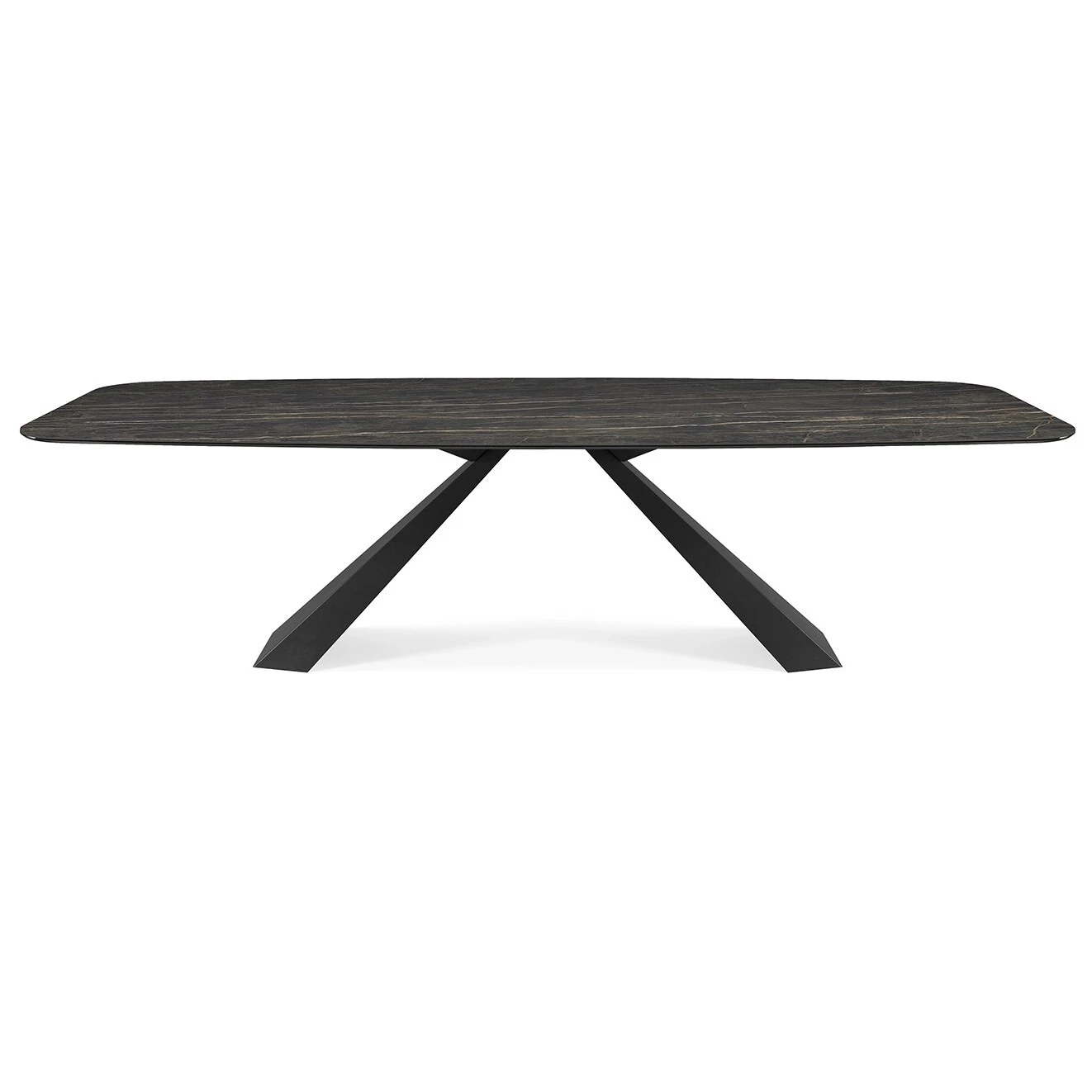 Stół z podstawą z tytanowej (GFM11), brązowej (GFM18), grafitowej (GFM69), białej (GFM71) lub czarnej (GFM73) lakierowanej stali. Blat ceramiczny Marmi Alabastro (KM02), Supreme (KM03), Ardesia (KM04), matowy Golden Calacatta (KM05), błyszczący Golden Calacatta (KM06), matowy Portoro (KM07), błyszczący Portoro (KM08), błyszczący Sahara Noir (KM09), Emperador (KM10), Makalu (KM11), Breccia (KM12) lub Arenal (KM13).