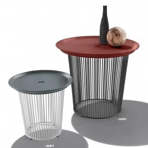 Innowacyjne połączenie materiałów wyróżnia wszechstronną rodzinę stolików kawowych i bocznych Berry Outdoor.
