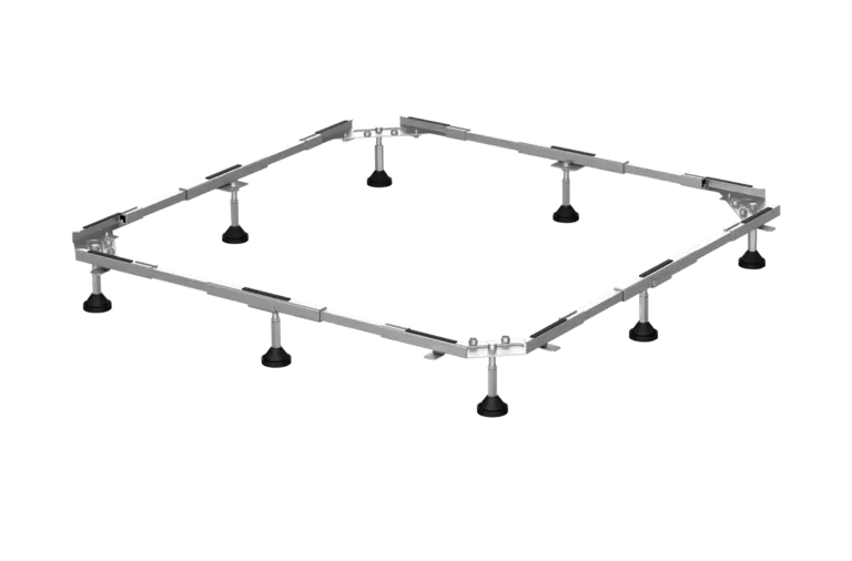 Szybszy, bezpieczniejszy i tańszy montaż wanien prysznicowych. Nogi regulowane wysokościowo są wkręcane w ramę pod krawędzią wanny. Zapewnia to równomierne rozłożenie obciążenia na całej ramie podczas korzystania z prysznica. Nie jest już konieczne podpieranie wanny prysznicowej.