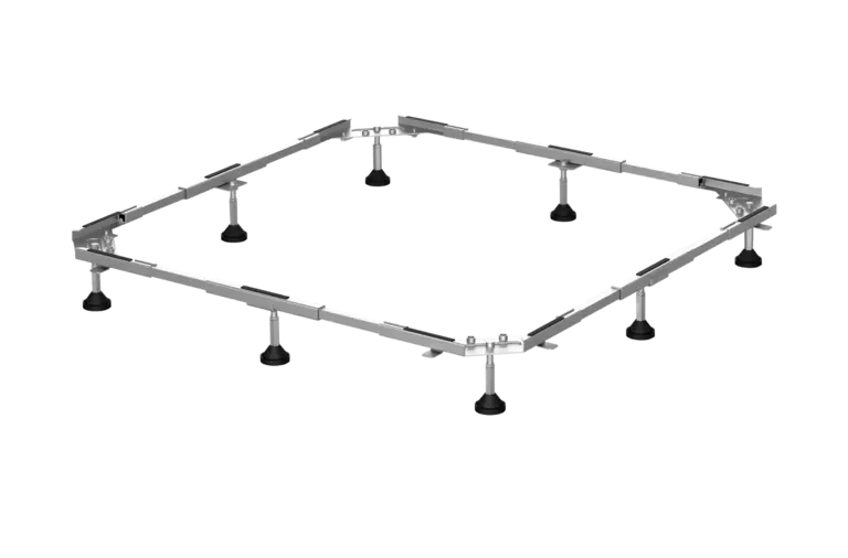 Szybszy, bezpieczniejszy i tańszy montaż podstawek prysznicowych. Regulowane wysokościowo nogi są wkręcane w ramę pod krawędzią wanny. Zapewnia to równomierne rozłożenie obciążenia na całej ramie podczas korzystania z prysznica. Nie jest już konieczne podpieranie podstawki prysznicowej.