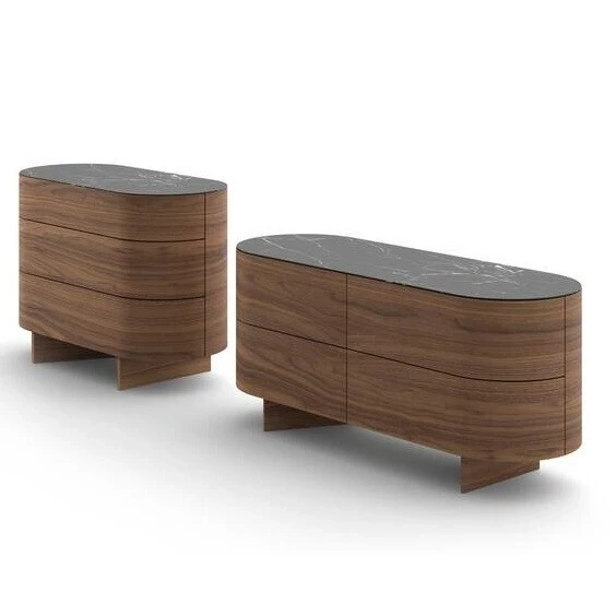 Zaprojektowany przez Patricię Urquiola, Rondos to komoda o miękkich, zaokrąglonych konturach, które łagodnie wyginają się wokół boków, nadając strefie dziennego wypoczynku i sypialni nieformalny i bardzo zapraszający charakter. Dostępny w dwóch rozmiarach dla strefy nocnej, z kilkoma konfiguracjami szuflad, oraz w dwóch rozmiarach dla stref dziennej, z szufladami lub otwartymi frontami. Ta szafka drewniana ma kilka opcji wykończenia blatu, od drewna dla struktury po marmur i szuflady z otwarciem na naciśnięcie.