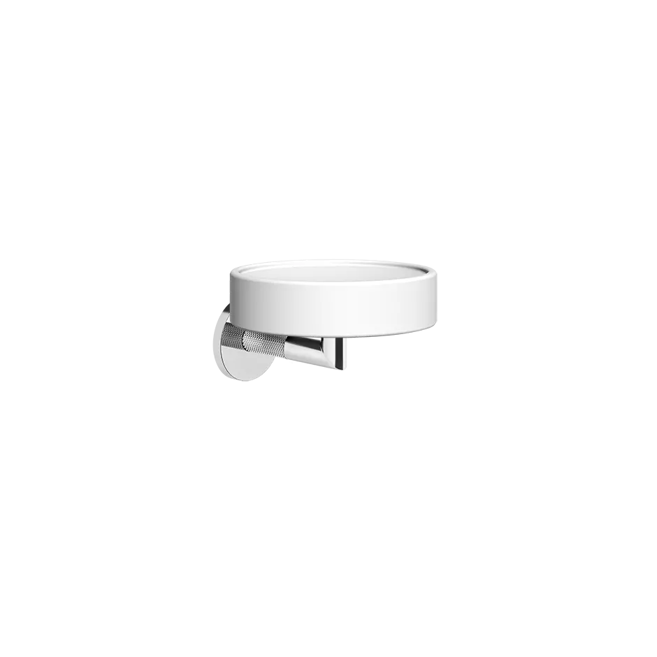 Biały uchwyt na mydło naścienny. Kolekcja Anello ma liczne warianty dostaw wody, a każdy akcesorium łazienkowe jest odpowiednio skoordynowany. Anello prezentuje nietypowe wykończenia i wzory, które wzmacniają design, uważany także za alternatywę dla metalowych powierzchni, które jesteśmy przyzwyczajeni widzieć w dziedzinie designu. Wyrafinowana i konkretne, nowa kolekcja Anello marki Gessi interpretuje współczesną, intensywną kobietę świadomą swojego uroku, która podbija scenę dzięki miękkości swoich form.