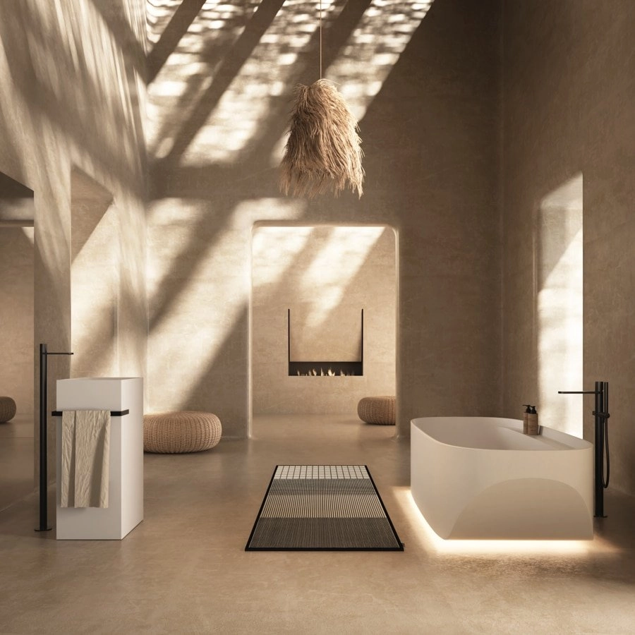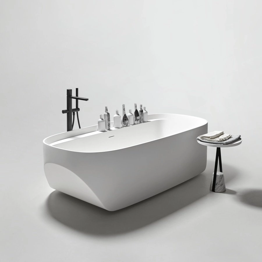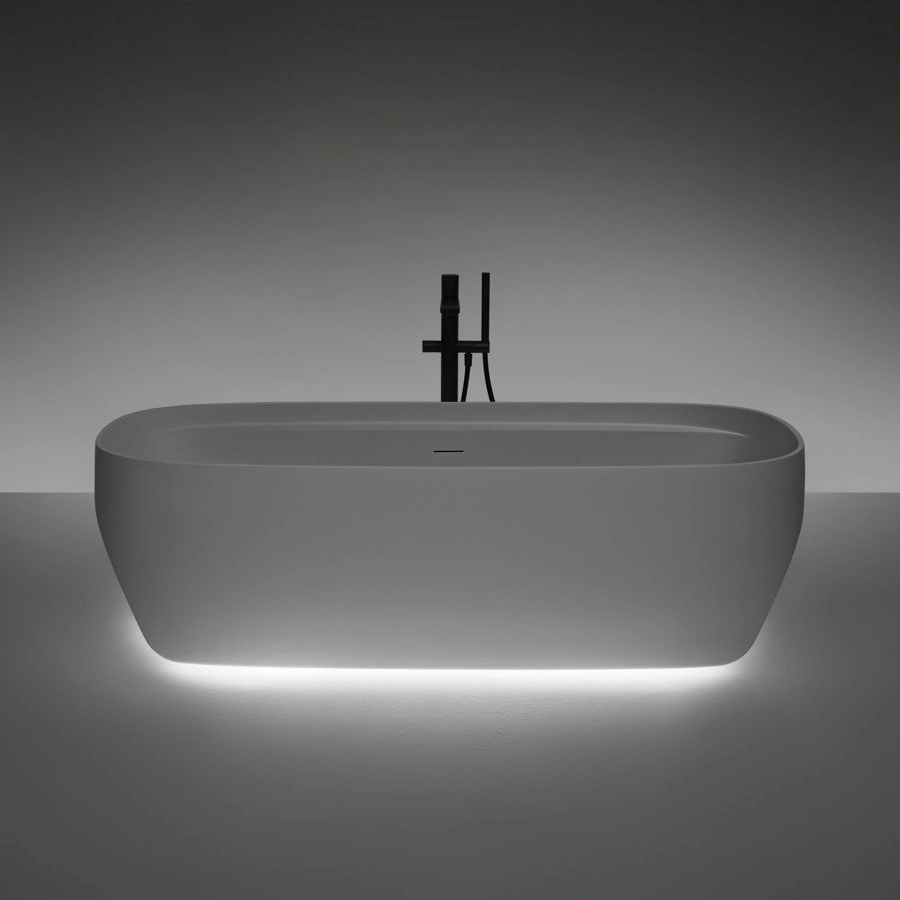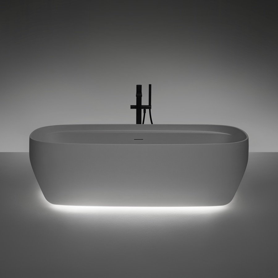 Silny znak, który wyrywa się z delikatnego kształtu, wolumin wyrzeźbiony z kilku części, elegancki i współczesny obraz, zawieszony, wzbogacony o funkcjonalne detale, które stają się charakterystycznymi cechami estetycznymi. Wynikiem jest wymiar rzeźbiarski, imponujący, ale lekki, organiczny jak naturalny element ukształtowany przez zręczną rękę człowieka. Sled to wolnostojąca wanna, która powstaje z przekształcenia doskonałej geometrii, poprzez dwa przekątne cięcia, które rozcinają głębokość misy i nacięcie, które podąża za obwodem w szerokości, jakby mierząc podłużny rozwój krawędzi.