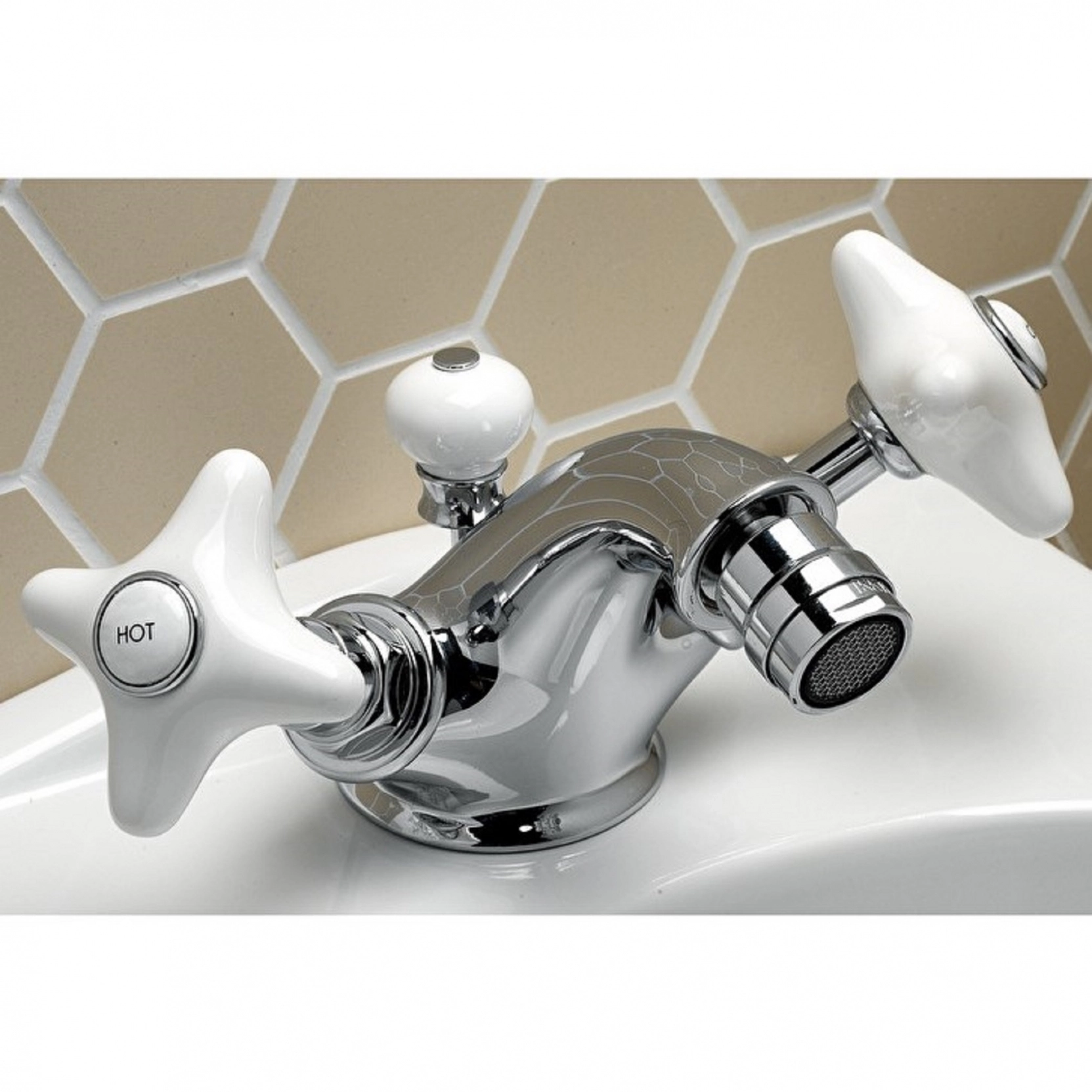 Klasyczne linie i atmosfera vintage dla kompletu bidetowego 1-otworowego z odpływem automatycznym, który doskonale łączy smak bon ton z funkcjonalnością. Uchwyty z delikatnej białej ceramiki. Korpus z mosiądzu, dostępny w następujących wykończeniach: miedziany antyk, brąz, chrom, polerowany nikiel, czarny nikiel, satynowy nikiel, jasne złoto i różowe złoto.